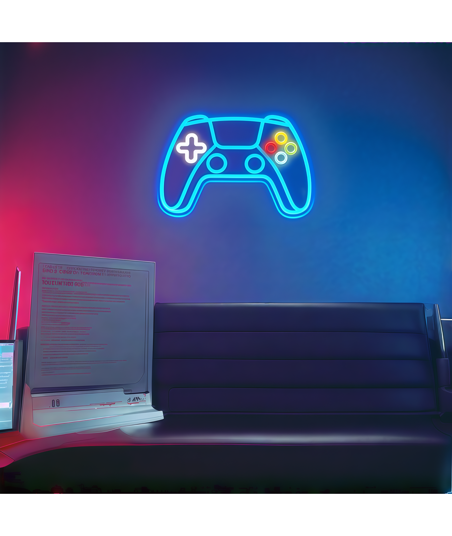 Ta gaming-oppsettet ditt til neste nivå med det ultimate Neon gamepad-skiltet! Dette er den perfekte måten å vise din gamer-stolthet på og få rommet ditt til å lyse opp i ekte RGB-stil.