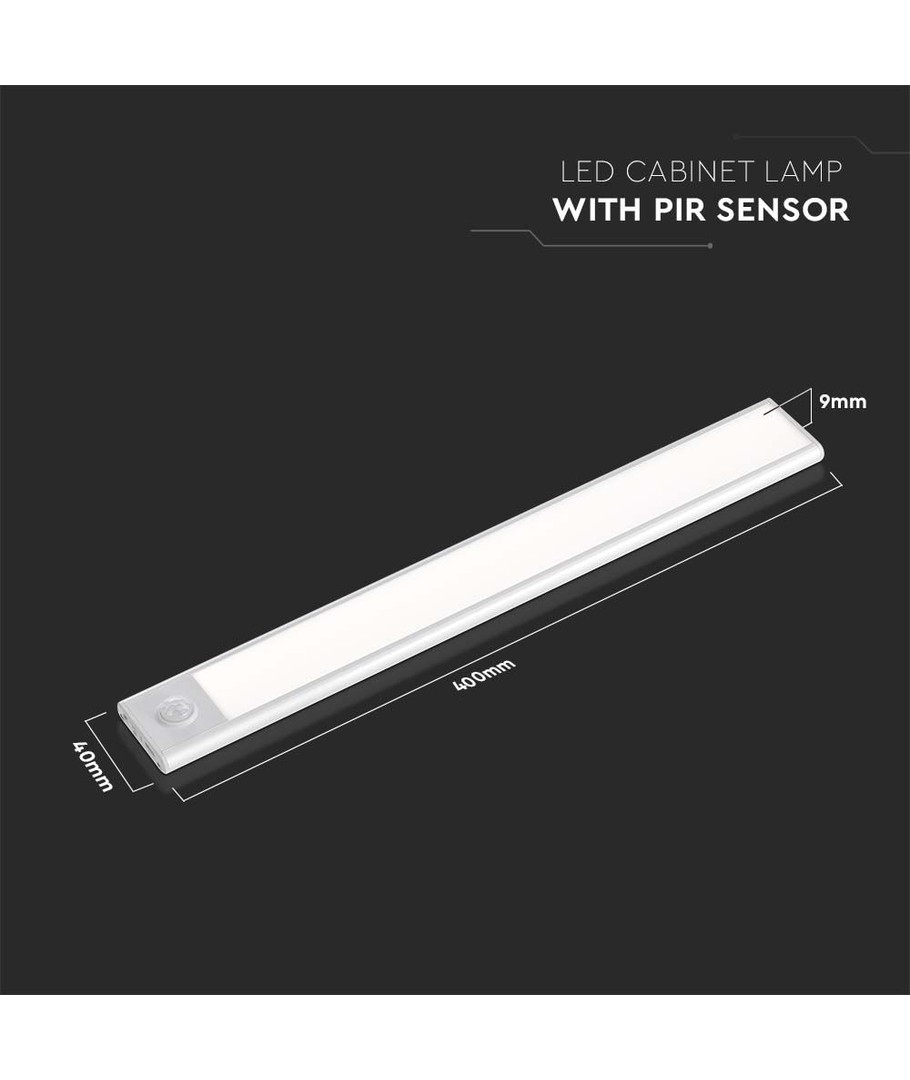 Med sine kompakte dimensjoner på 400 x 9 x 40 mm, passer lyset perfekt i ulike skap og hyller uten å være påtrengende. Den integrerte lyskilden gjør installasjonen enkel og problemfri.