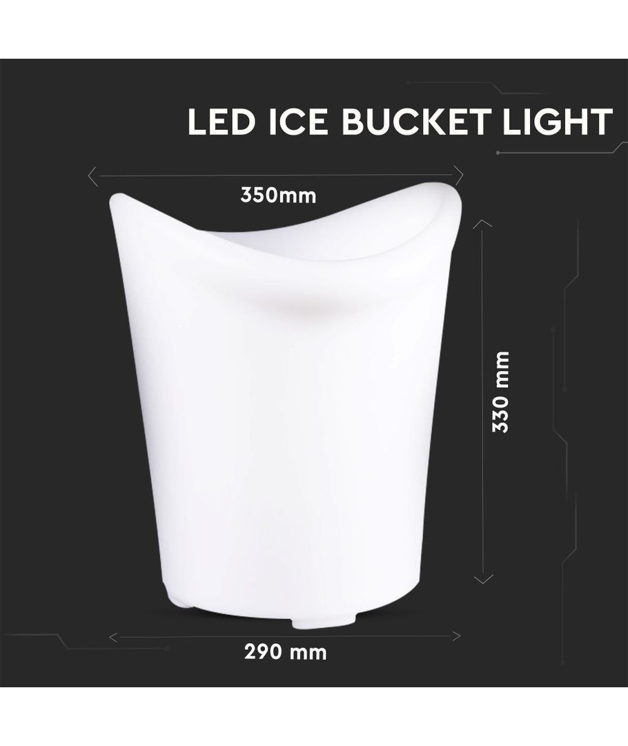 Målene på denne isbøtten er 330 x 350 x 290 mm, noe som gir rikelig plass til å holde drikker kalde samtidig som den fungerer som en iøynefallende belysningsenhet. Det kompakte, men romslige designet gjør den lett å plassere på bord, terrasser eller barer.