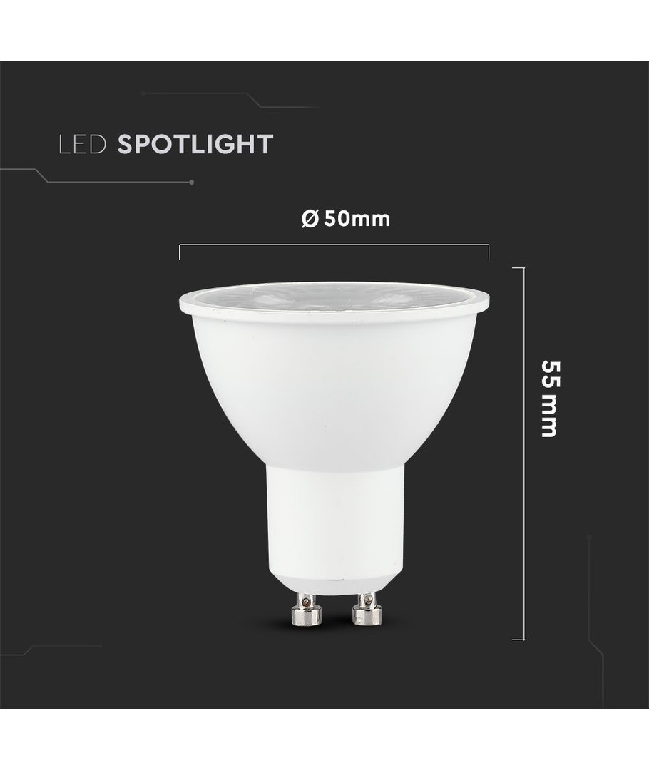 Med kompakte dimensjoner på 55 x Ø50 mm, passer V-Tac 7,5W LED spot lett inn i de fleste belysningsarmaturer, noe som gjør den til et allsidig valg for en rekke lysbehov.