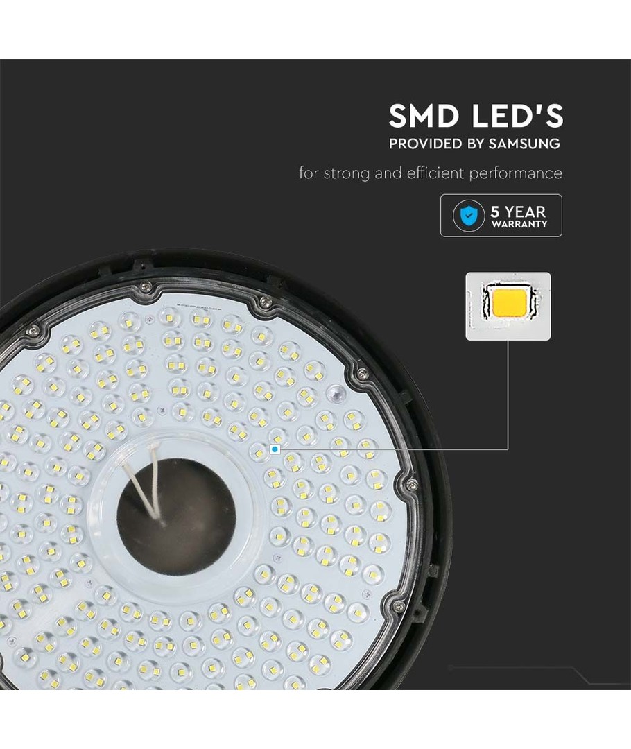 Oppgrader belysningen med vår V-Tac 150W LED high bay som er utstyrt med høykvalitets Samsung LED chip. Denne lysarmaturen er designet for å gi enestående lysytelse og holdbarhet.