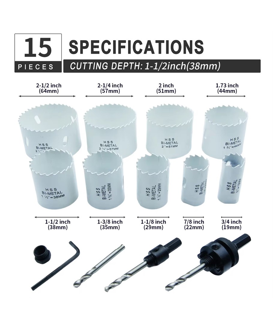 Sett med 9 stk. hullsager Ø19-64mm, Bi-metal hullsag