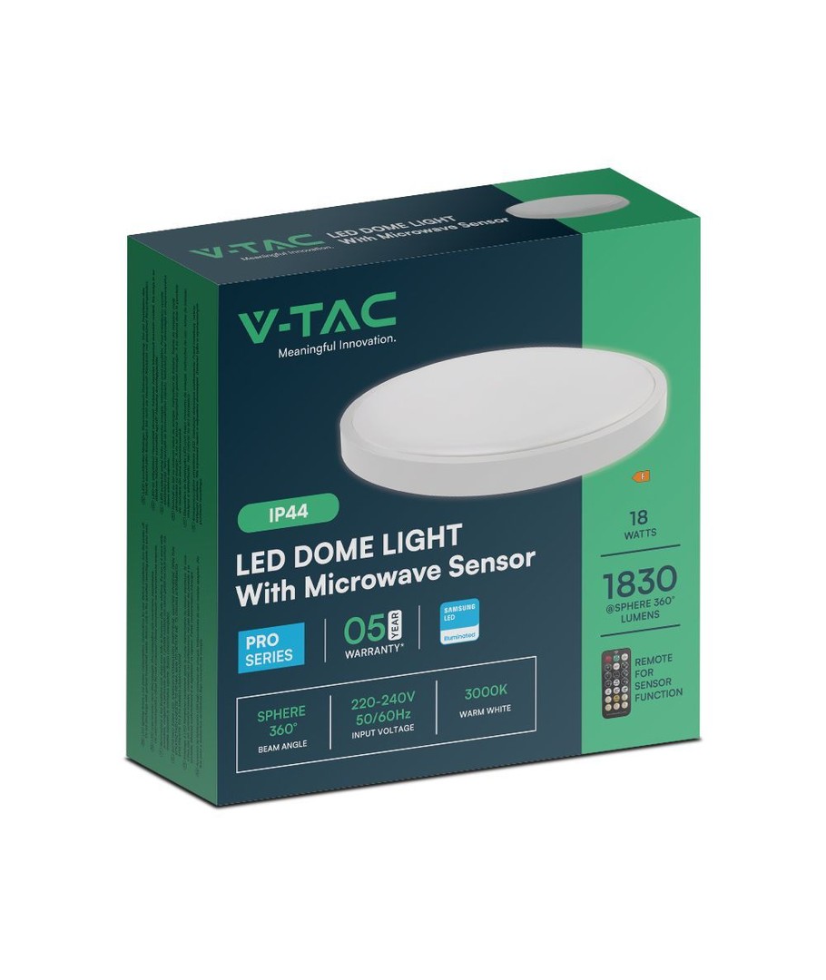 Oppgrader belysningen i hjemmet eller på arbeidsplassen med den moderne og effektive V-Tac 18W LED sensorlampen. Denne lampen er utstyrt med en pålitelig Samsung LED chip og en mikrobølgesensor som sikrer automatisk aktivering ved bevegelse. Designet for innendørs bruk, gir denne lampen en overraskende kraftig lysstyrke på 1830 lumen med en bred lysspredning på 120 grader, noe som gir en jevn og komfortabel fordeling av lyset.