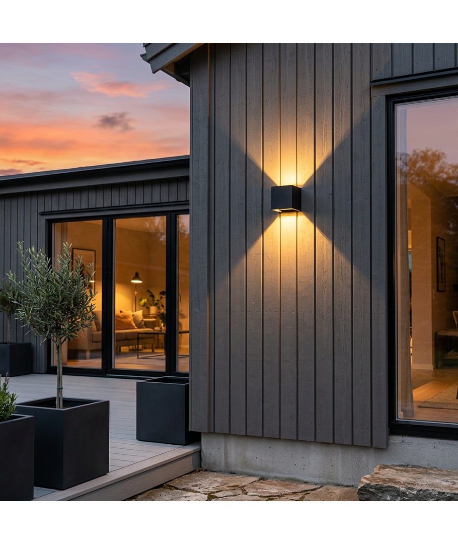 Utforsk fleksibiliteten og stilrenheten til LEDlife CUBIC PRO 6W vegglampen, designet for både innendørs og utendørs bruk. Med en effekt på 6W og lysstyrke på 450 lumen, gir den et balansert og effektivt lys til ditt rom eller hageområde.