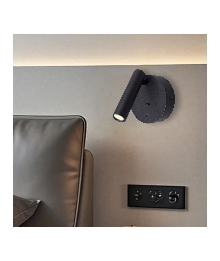 Leselampe i svart farge for veggmontering.