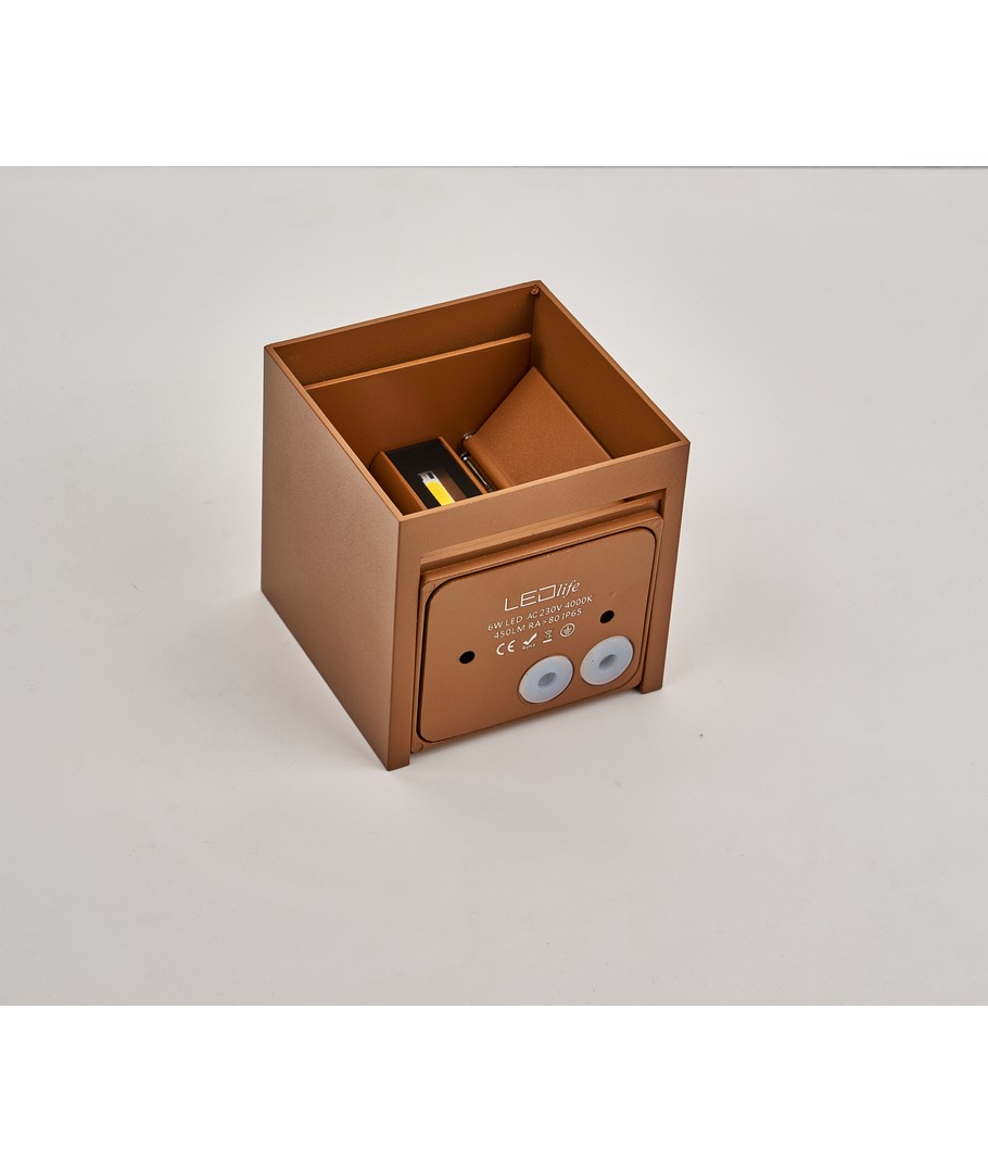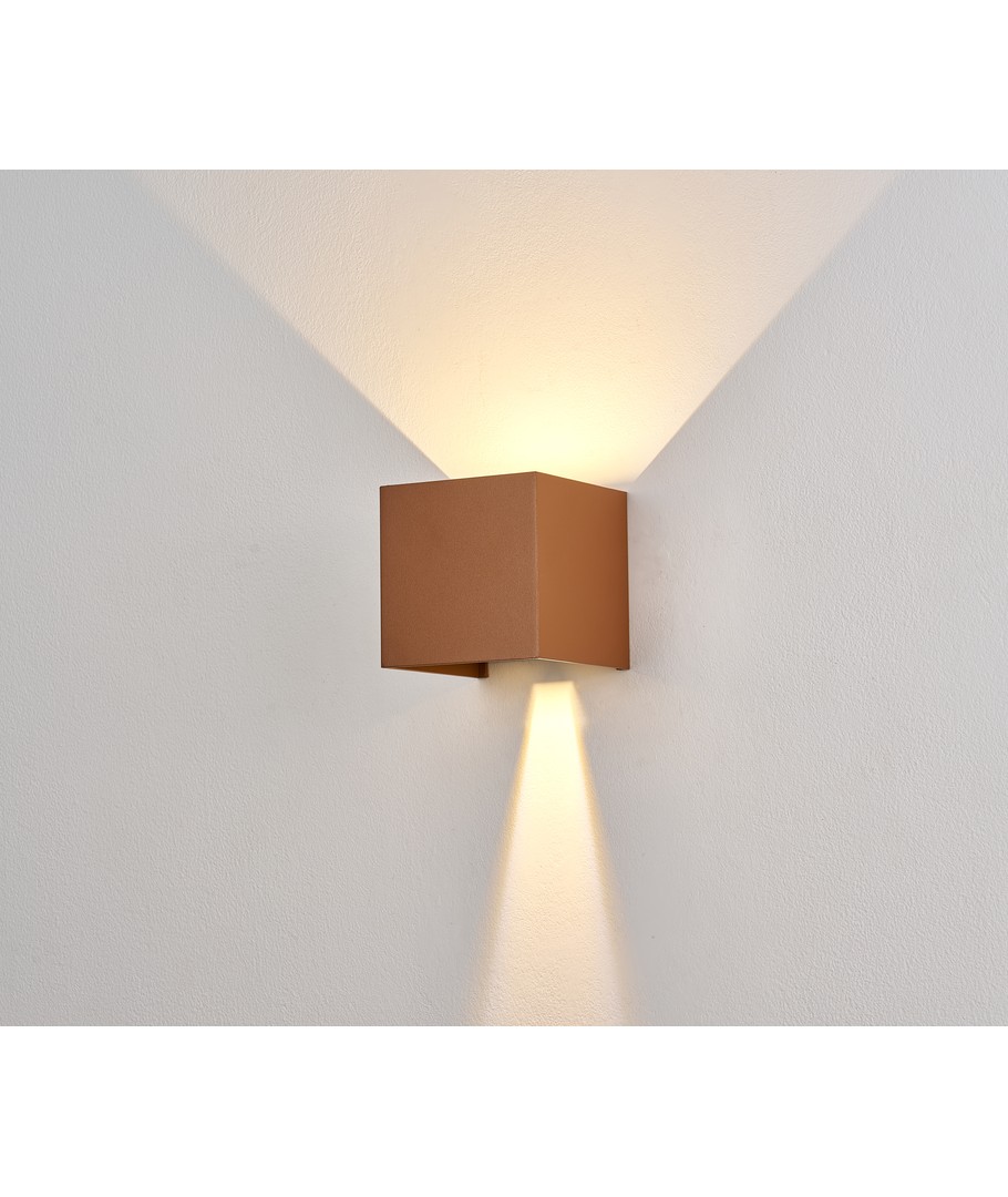 Denne opp/ned vegglampen i Corten-farge fra danske LEDlife er designet med fokus på estetikk og kvalitet. Vegglampen har justerbar spredning (10-120 grader) i både topp og bunn. Denne funksjonen er svært populær fordi den ofte hever bygningens utseende og gir et moderne og elegant uttrykk. Lampen er vanntett og kan derfor brukes både inne og ute.