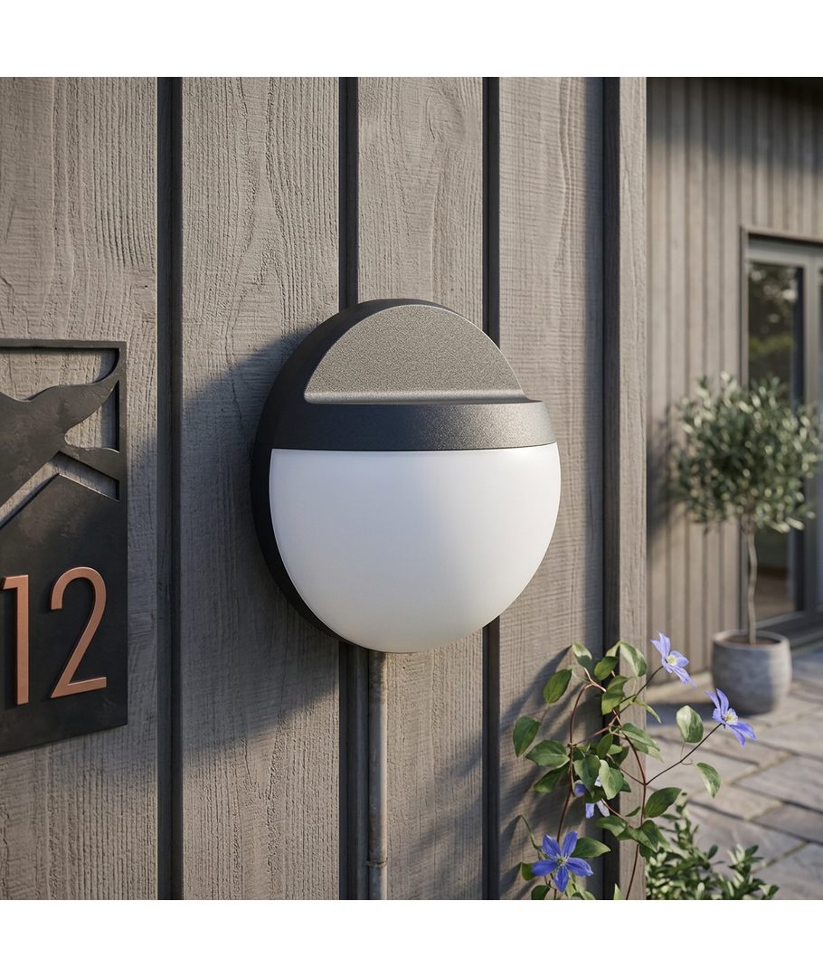 Gi fasaden eller inngangspartiet et moderne løft med denne elegante 12W LED vegglampen i sort finish. Lampen har et tidløst rundt design og er konstruert i robust ABS-plast, noe som gjør den ideell til utendørs bruk. Med en IP54-klassifisering er den beskyttet mot vind og vær, slik at den bevarer sitt flotte utseende år etter år.