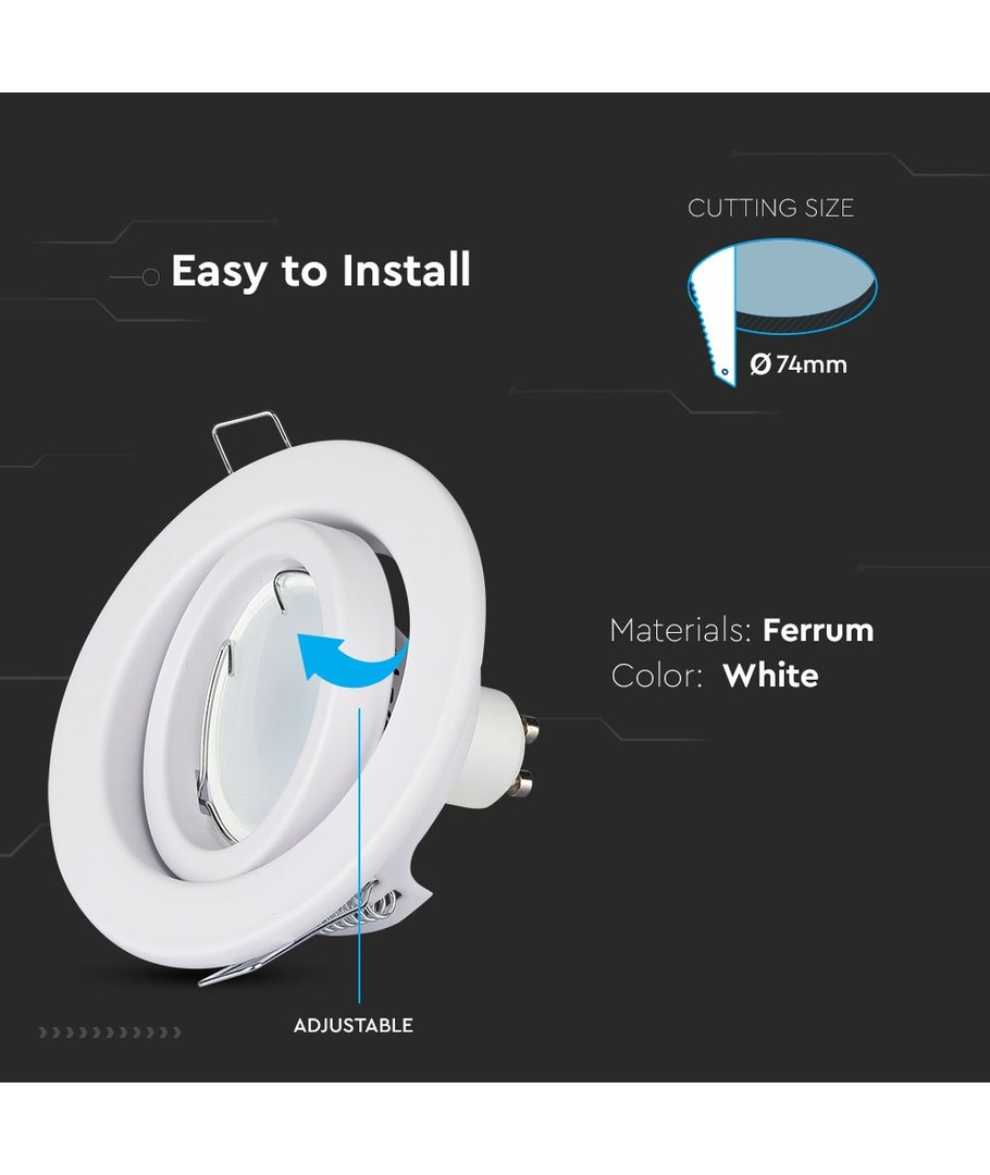 Dette stilige MR16 eller GU10 Downlight kit er designet for å gi deg fleksibilitet og eleganse i ditt belysningsmiljø uten å gå på kompromiss med funksjonalitet.