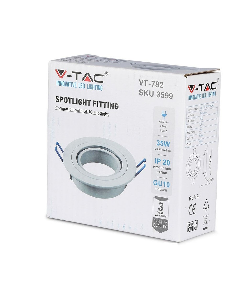 Passer til MR16 eller GU10 LED-pærer med en diameter på 50 mm.