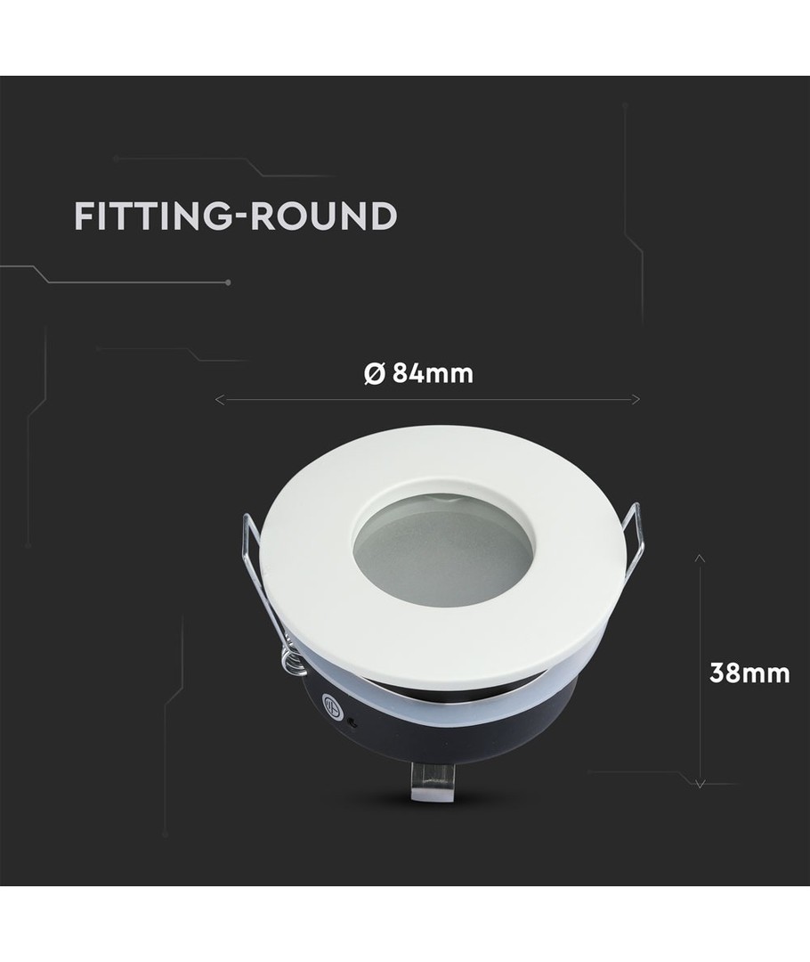 Hull: Ø7,5 cm, Mål: Ø9,1 cm, matt hvit, velg MR16 eller GU10 fatning