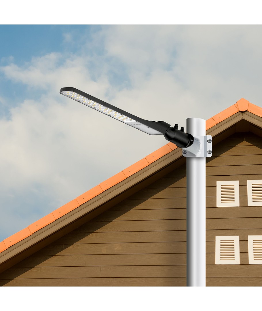 Opplev effektiv og pålitelig belysning med denne 100W LED gatelampe, designet for å lyse opp veier og plasser med sin kraftige lysstyrke og robuste konstruksjon.