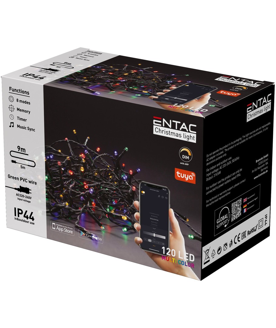 9 meters Smart Home utendørs LED julelysslynge med 120 LED's multicolor.