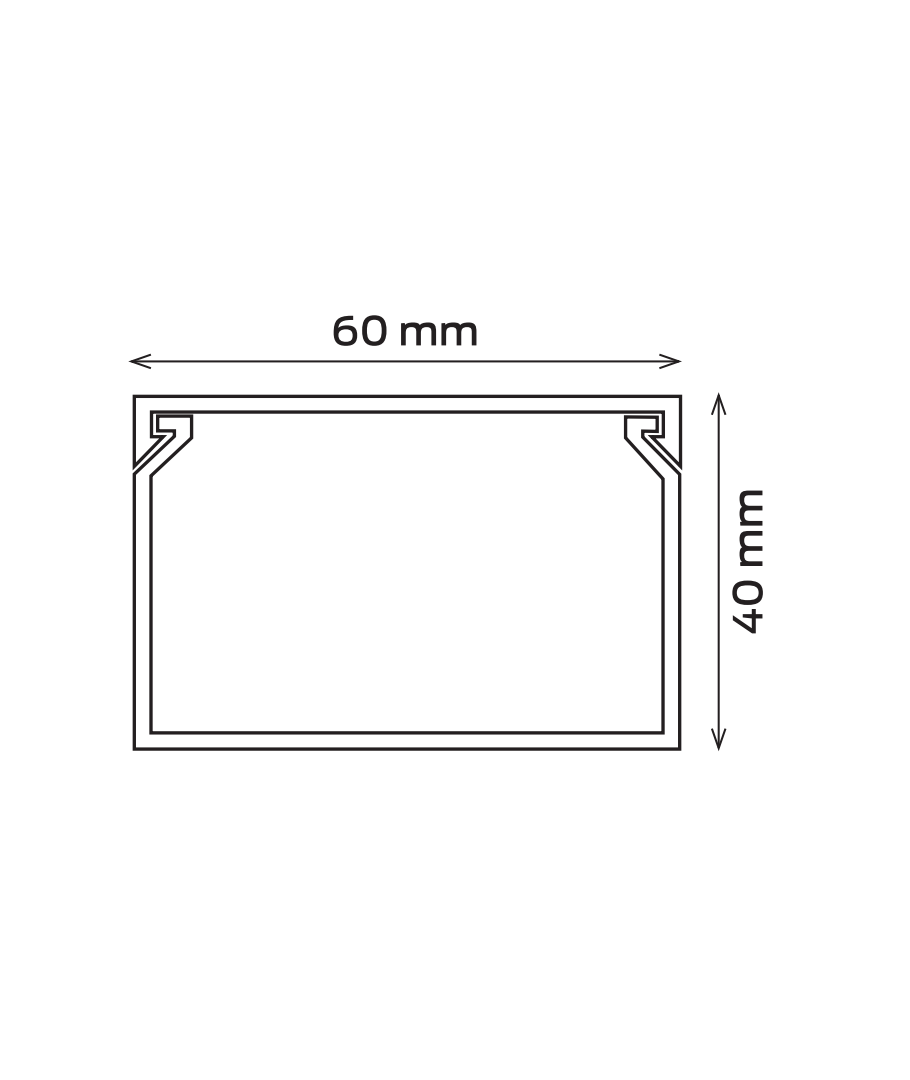 Hvit kabelkanal på 2 meter som måler 60 mm i bredden og 40 mm i høyden.