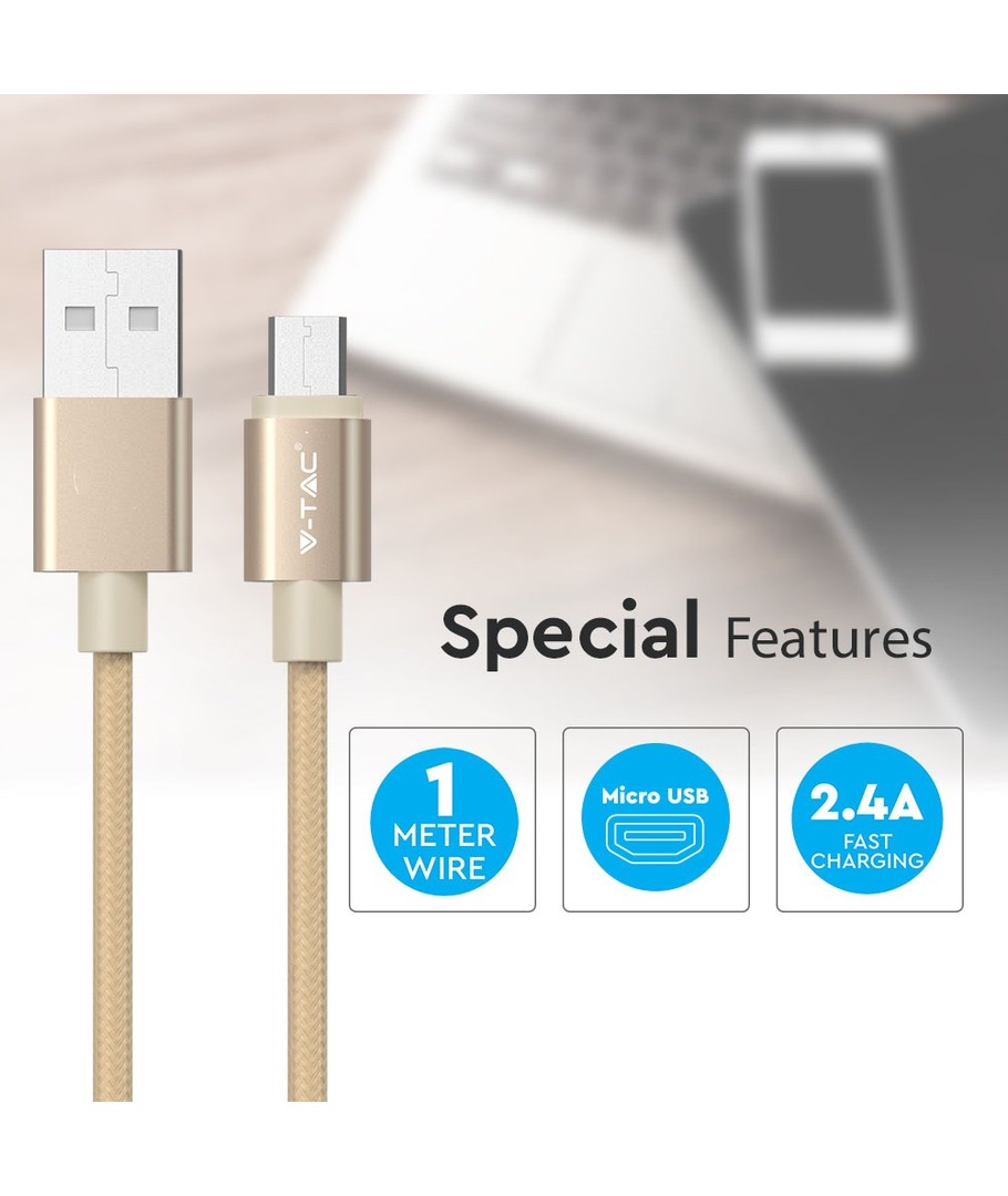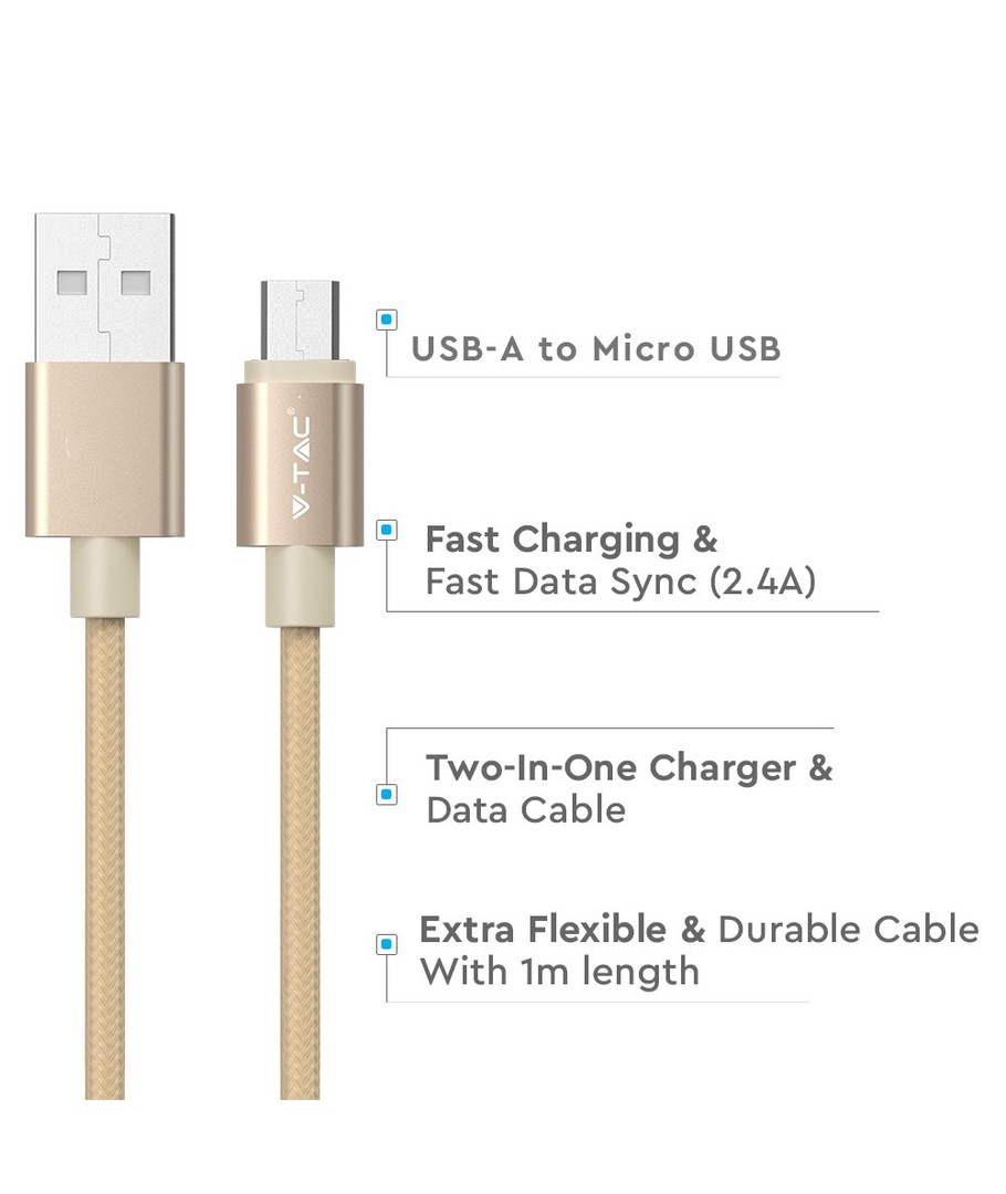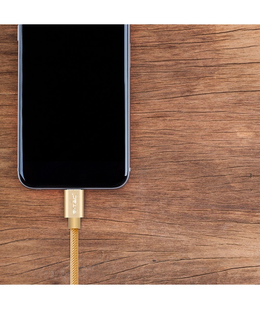 Dette gullfargede MicroUSB stoffkabel er den ideelle kombinasjonen av funksjonalitet og estetikk, og vil være et verdifullt tilbehør til din daglige bruk.