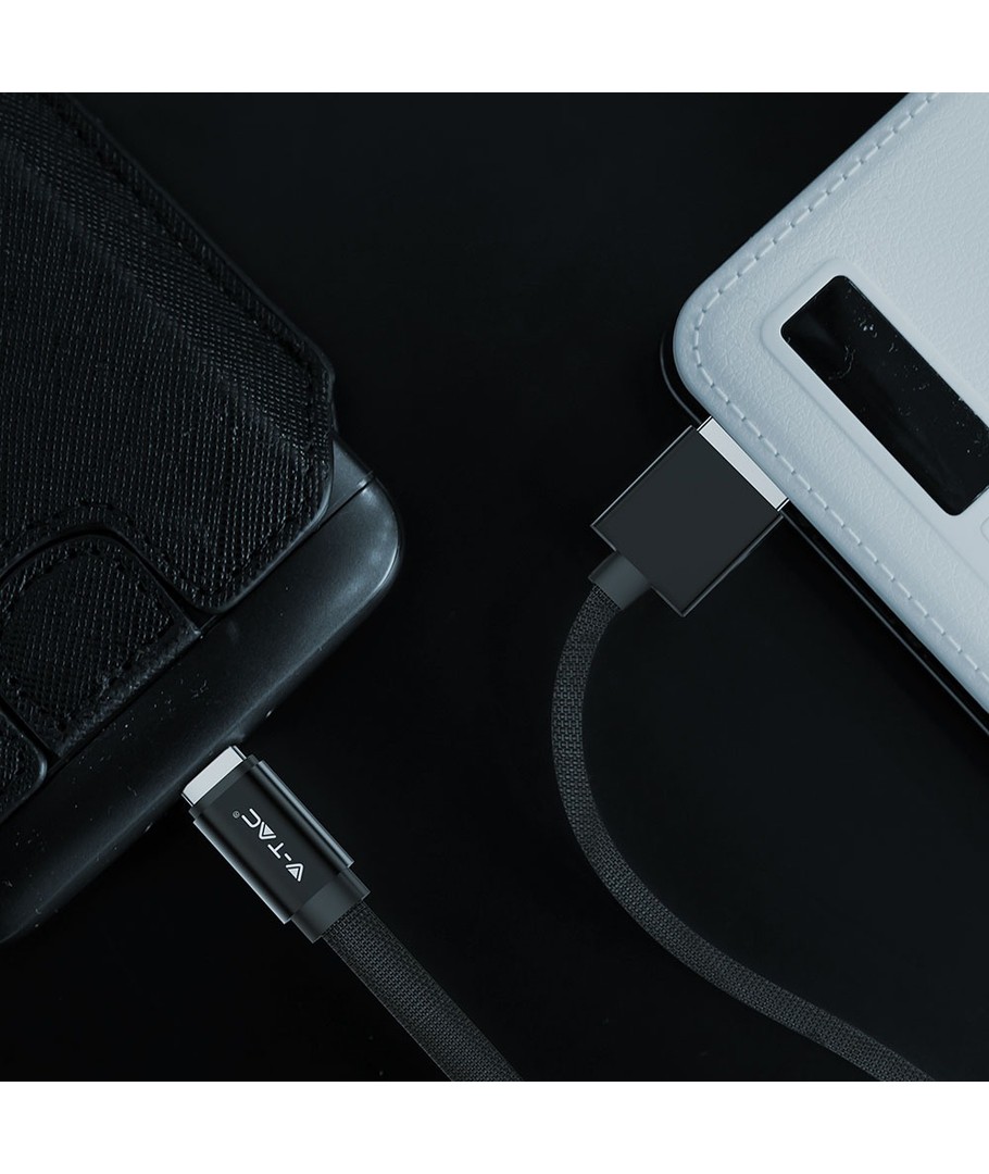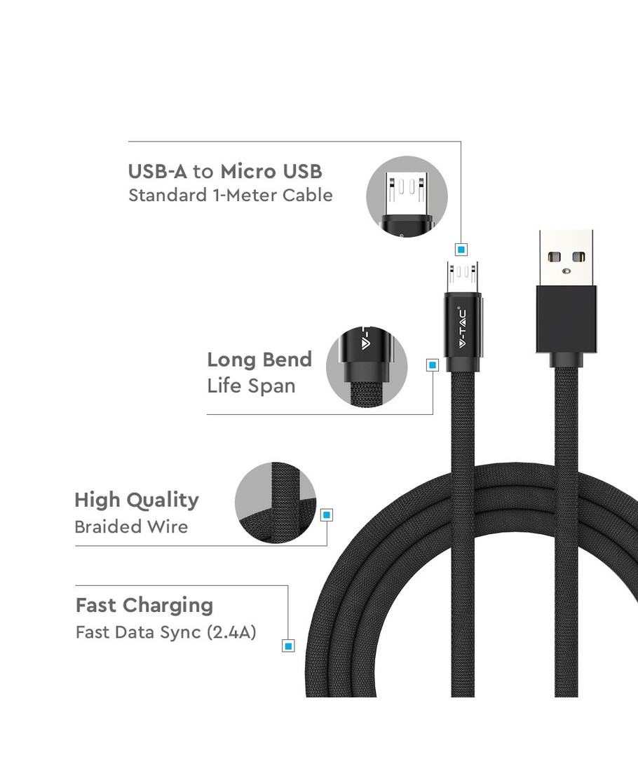Opplev allsidighet og holdbarhet med vår MicroUSB 1m stoffkabel i Sort, designet for å imøtekomme både lade- og datatransmisjonsbehov.