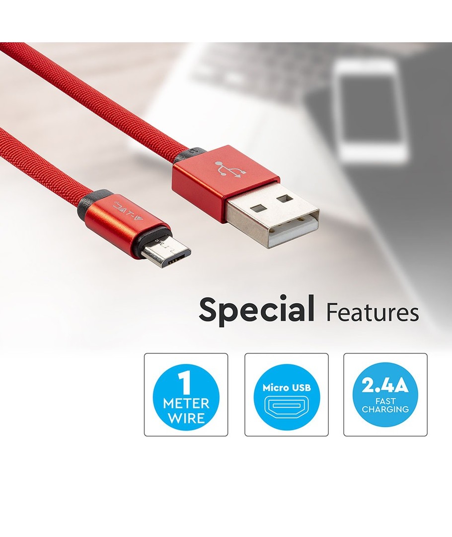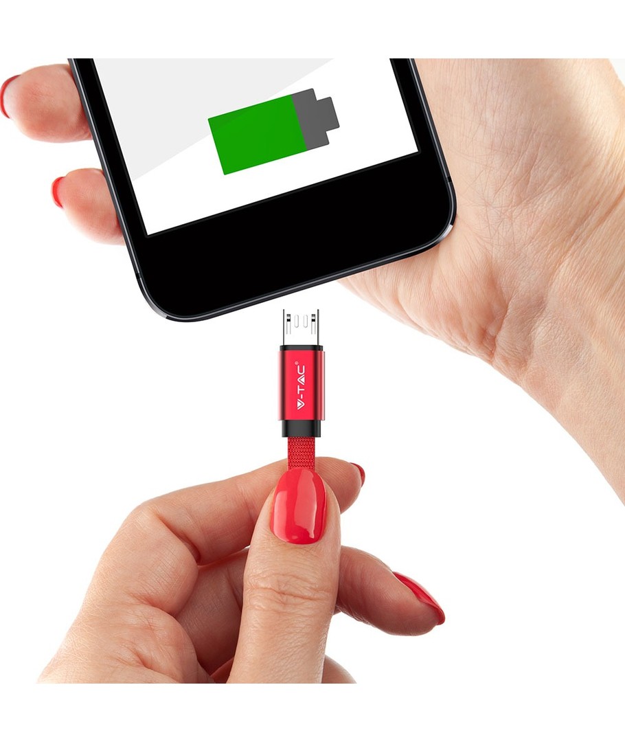 Oppdag den allsidige og stilige MicroUSB kabel 1m rød - perfekt for både dataoverføring og lading med sin unike flettede bomullsbelegg.