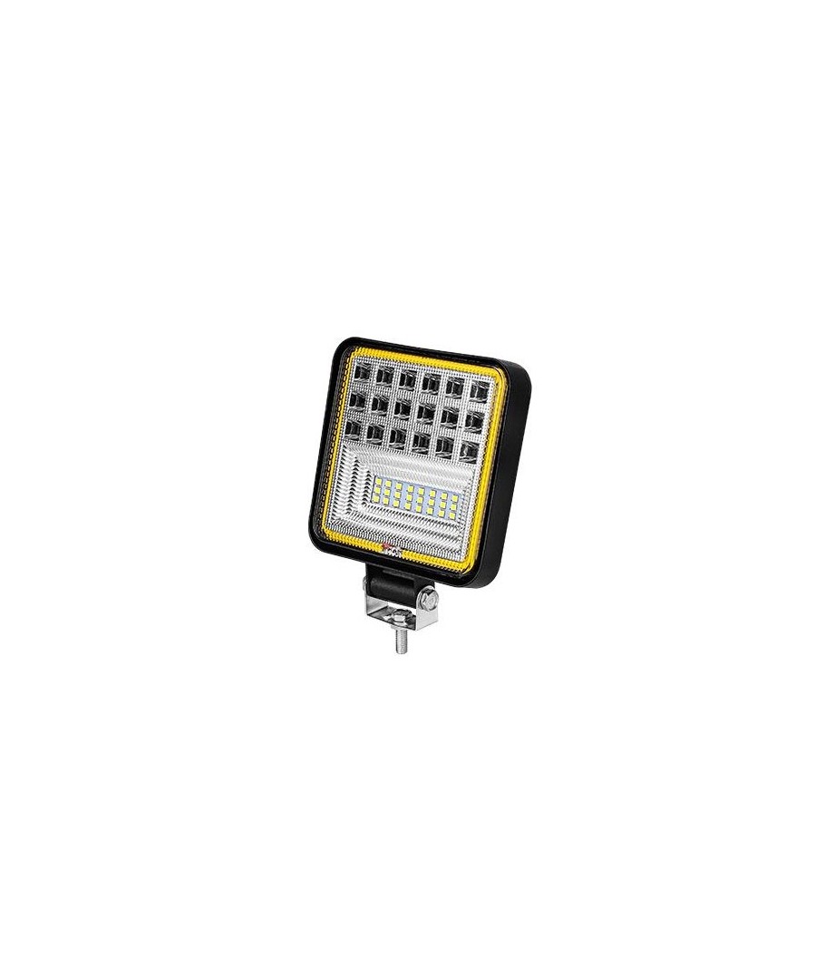 Projektøren har 126W LED'er, målt til 29WDenne LED arbeidslampen er ideell for bruk på bil, lastebil, traktor, tilhenger, og utrykningskjøretøy. Utstyrt med både kald hvit og oransje lys, er den perfekt for ulike arbeidsforhold og behov.