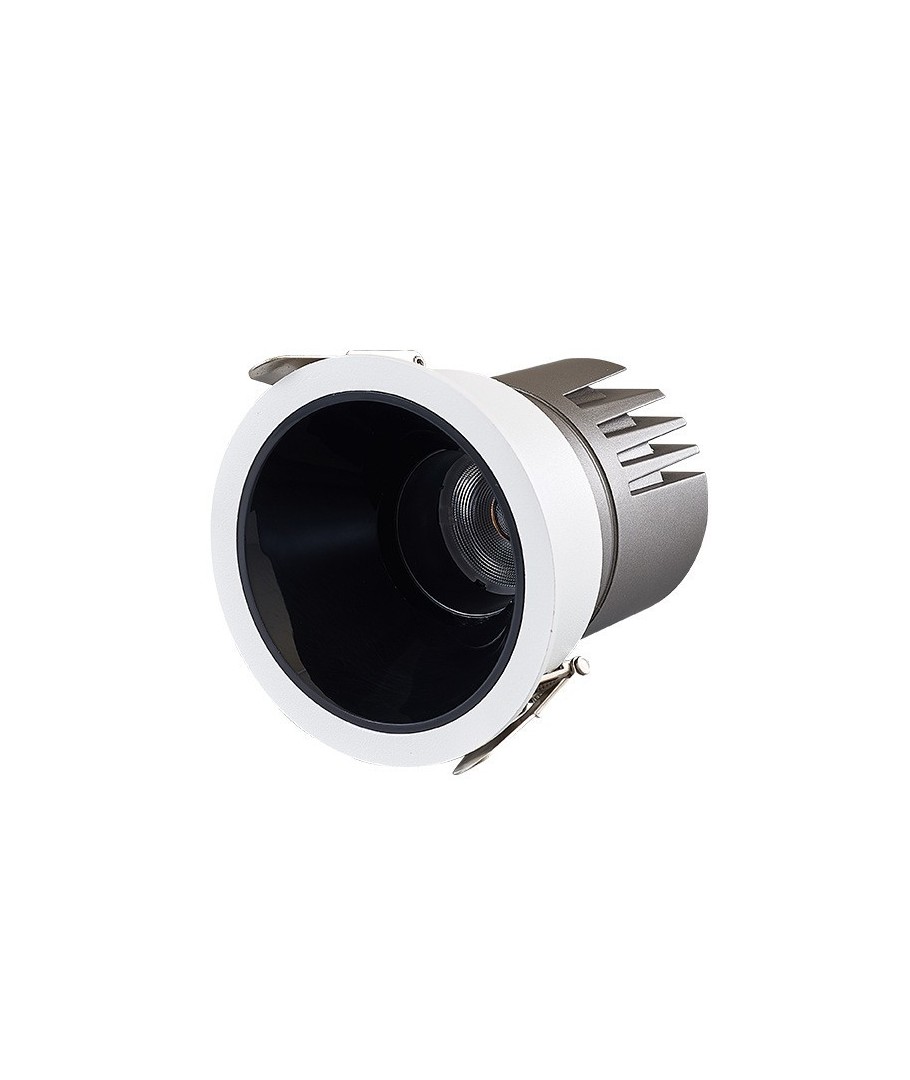 Den har et moderne og diskré design med svart reflektor og hvit kant som gir en stilren finish til ethvert rom. Med dimensjoner på Ø84 mm i diameter og en hul størrelse på Ø75 mm, passer den perfekt til de fleste tak- og vegginstallasjoner.