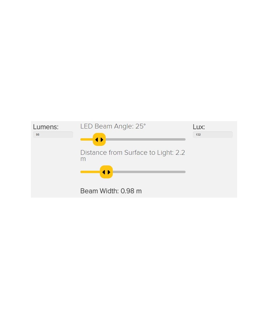 Montert i en høyde på 2,2 meter gir denne spoten 153 lux på gulvet.