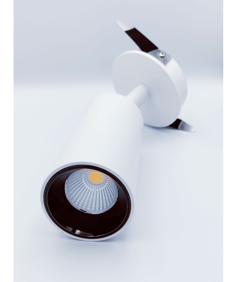 Denne innfelte spotlampen med hvit finish kombinerer estetikk og teknisk kvalitet, noe som gjør den til et perfekt valg for både hjem og kontor.