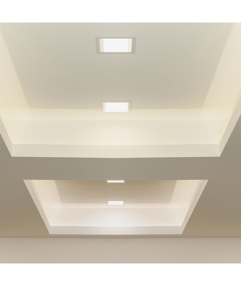 Det kompakte designet har en størrelse på 22,5 x 22,5 cm med en hul størrelse på 20,5 x 20,5 cm, noe som gjør det enkelt å tilpasse i ulike miljøer. Panelet har en dybde på 12 mm og er laget for IP20 beskyttelse, hvilket betyr at det ikke er vannbestandig.