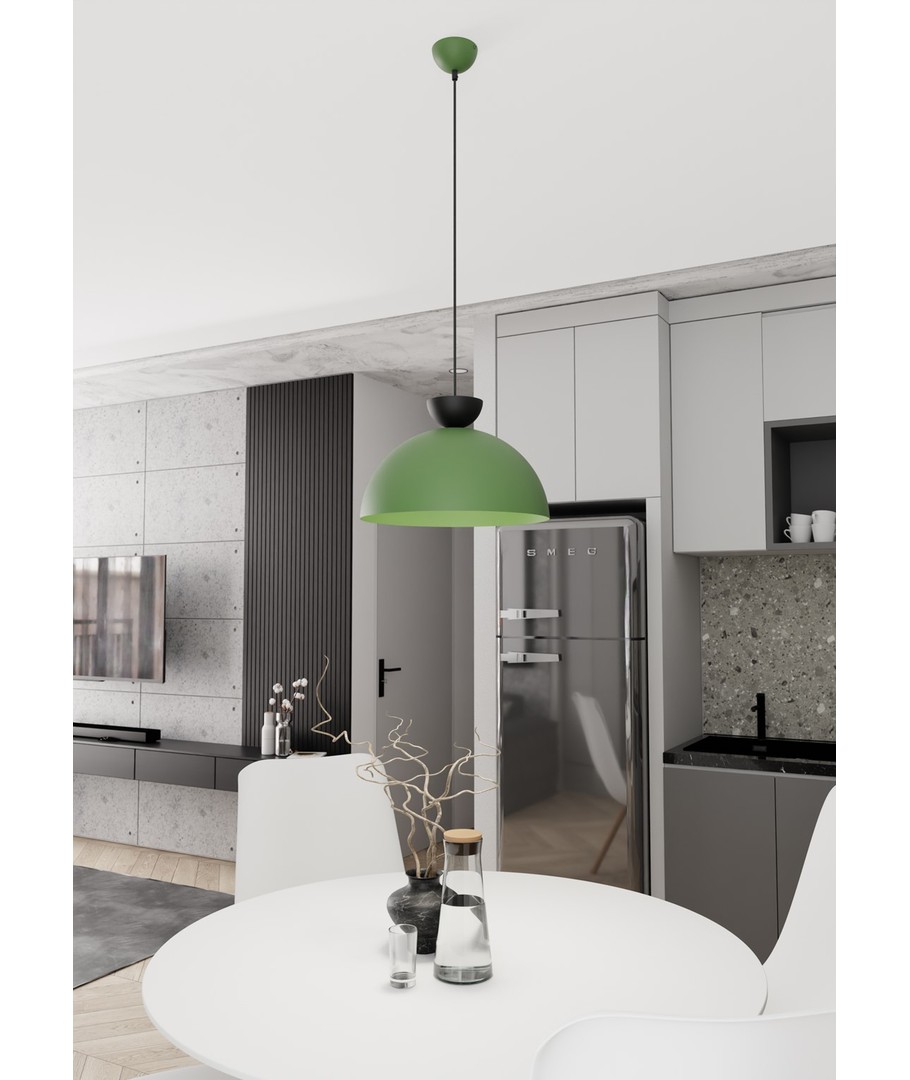 Opplev estetikk og funksjonalitet smelte sammen med Lunaro 1L Sort/Grønn pendellampe. Denne lampen kombinerer moderne minimalisme med tidløs stil og er designet for å skape en innbydende atmosfære i ethvert rom. Den halvkuleformede skjermen minner om månens form og avgir et koselig, behagelig lys. Med sin matte overflate tilfører lampen et sofistikert preg til både moderne tak og klassiske interiørstiler. Lunaro lampen har justerbar lengde, noe som gjør den ideell over spisebordet, i stuen eller soverommet.