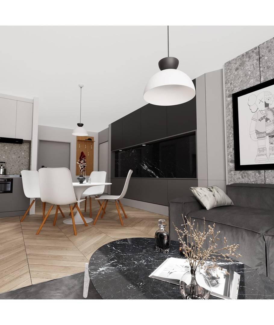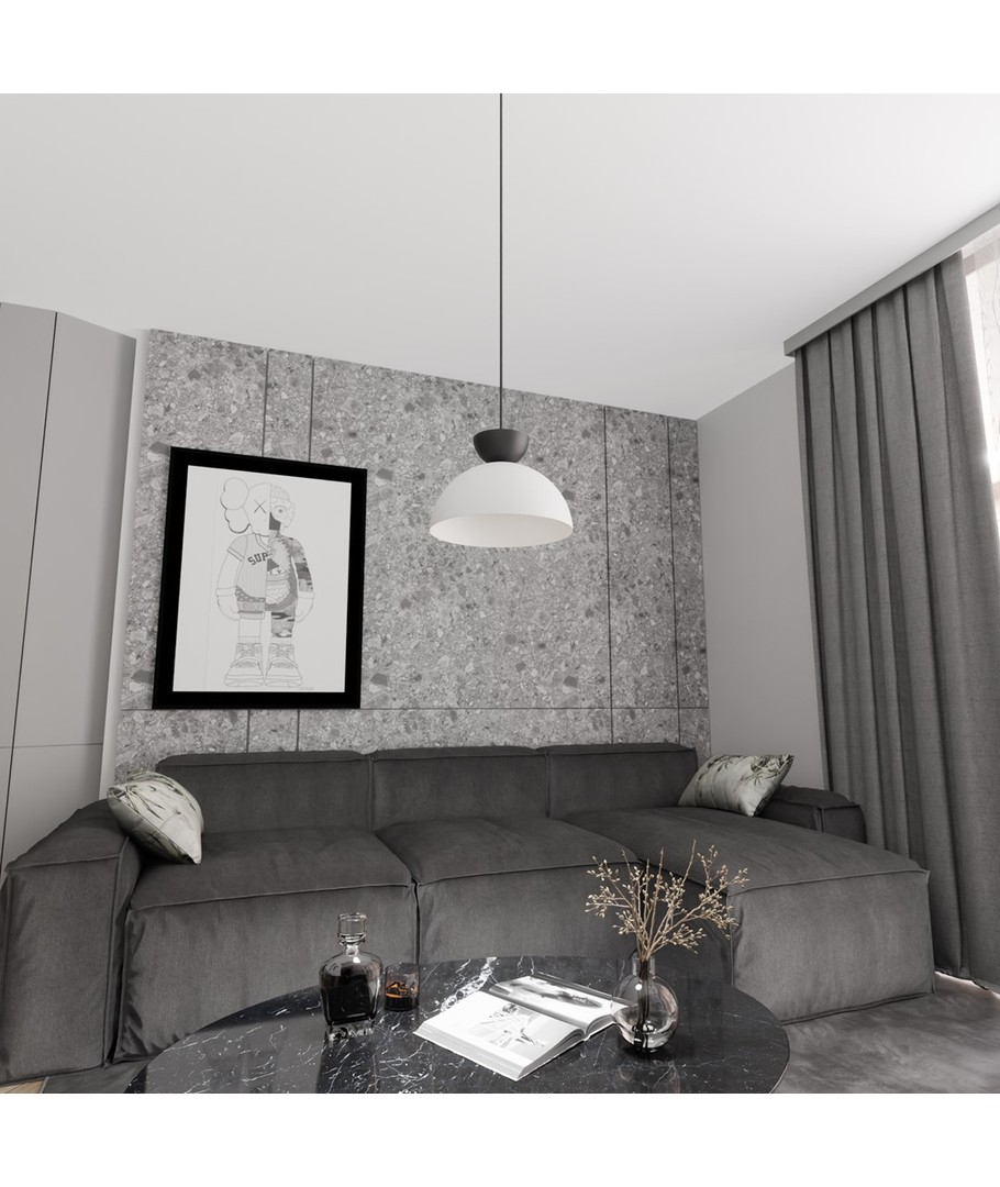 Oppdag elegansen med vår hvite og sorte pendellampe, designet for å gi et moderne preg til ditt oppholdsrom. Dette produktet er en kombinasjon av funksjonalitet og estetikk, og er et ypperlig valg for både stue, spisestue eller andre oppholdsrom der du ønsker subtil, men effektiv belysning.