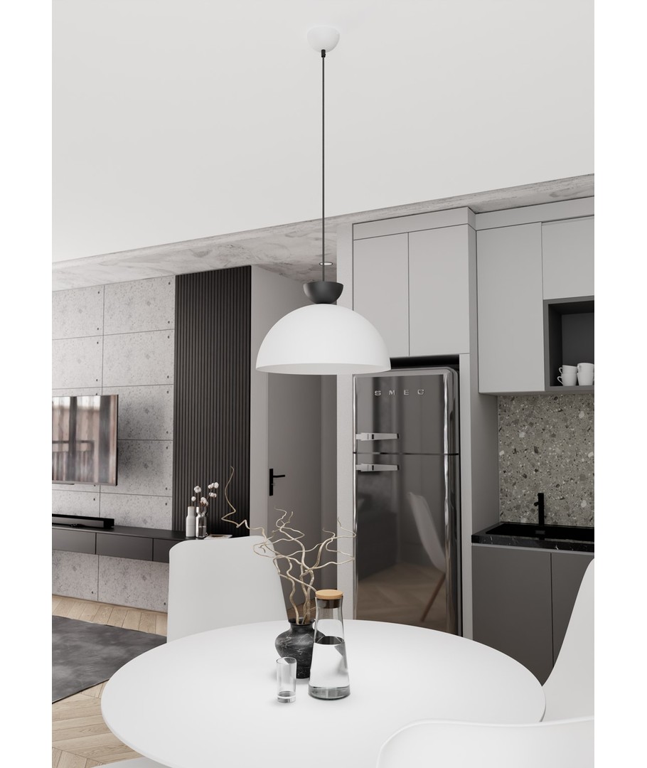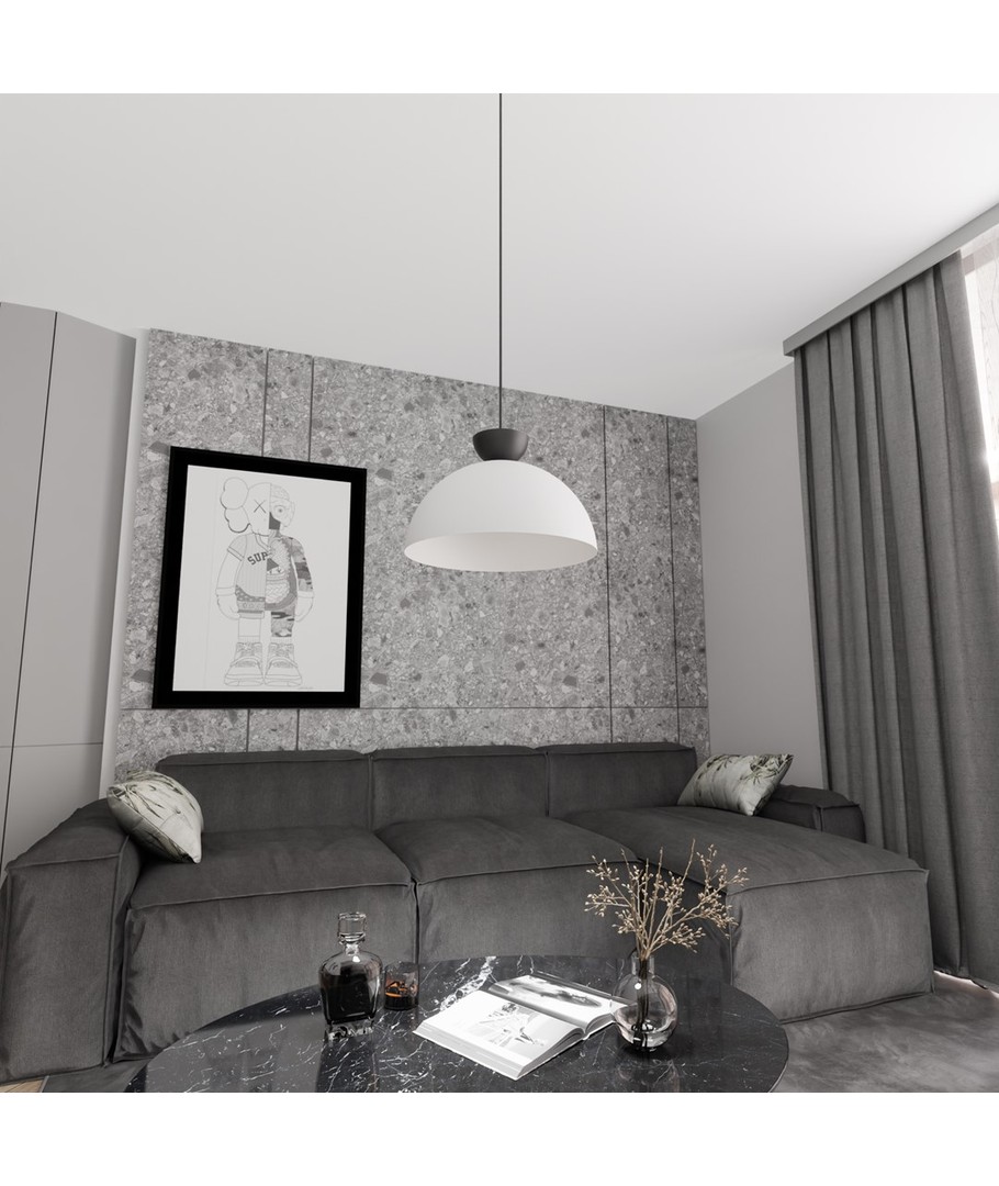 Lunaro 1L pendellampe kombinerer moderne minimalisme med tidløs eleganse, noe som gjør den til et åpenbart valg for enhver innredning. Lampens halvkuleformede skjerm, inspirert av månens form, skaper en koselig og stemningsfull belysning som passer perfekt til både moderne og klassiske omgivelser. Den matte finishen tilfører et sofistikert touch, mens det enkle designet sørger for at lampen blir et iøynefallende element i ethvert rom.