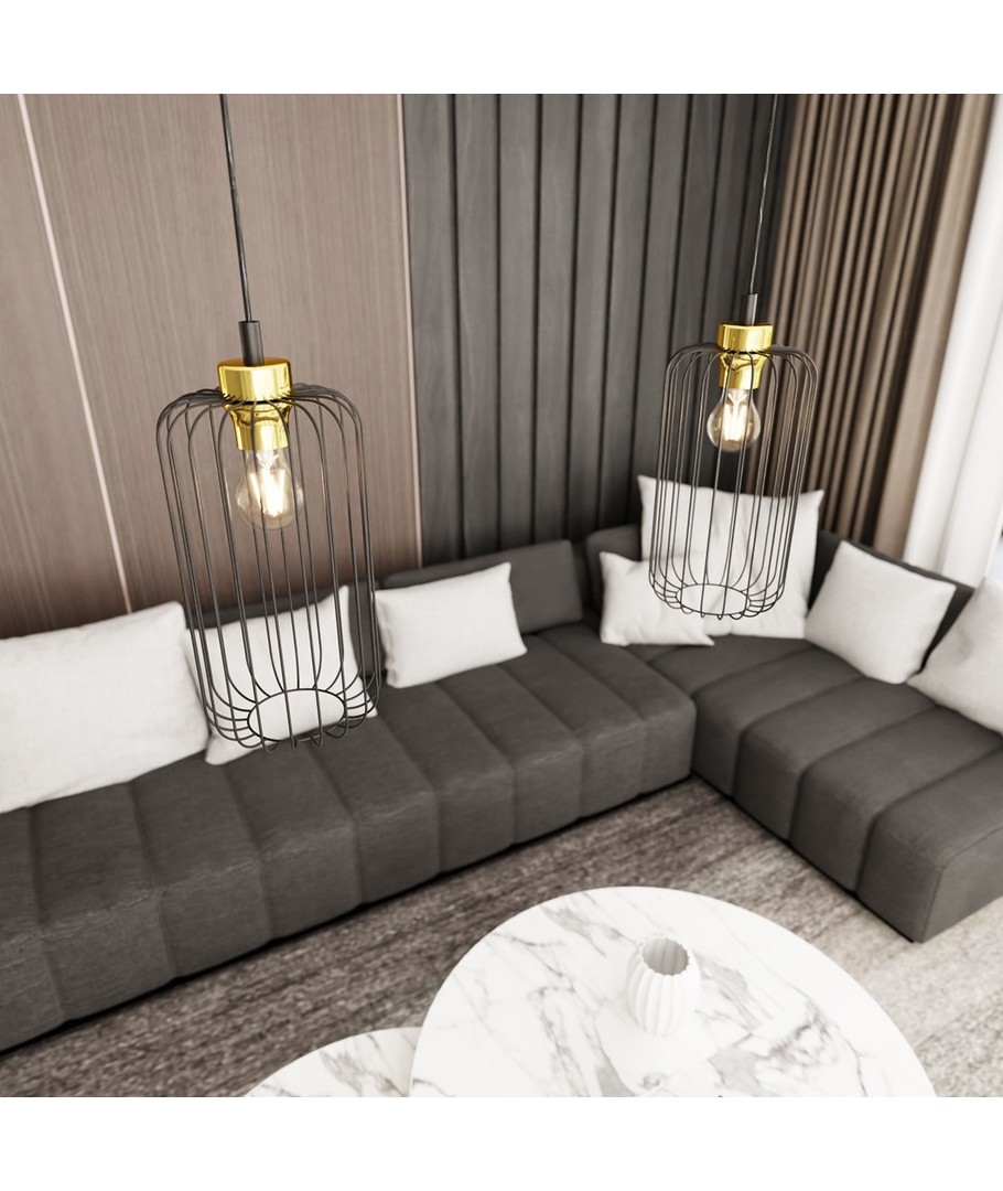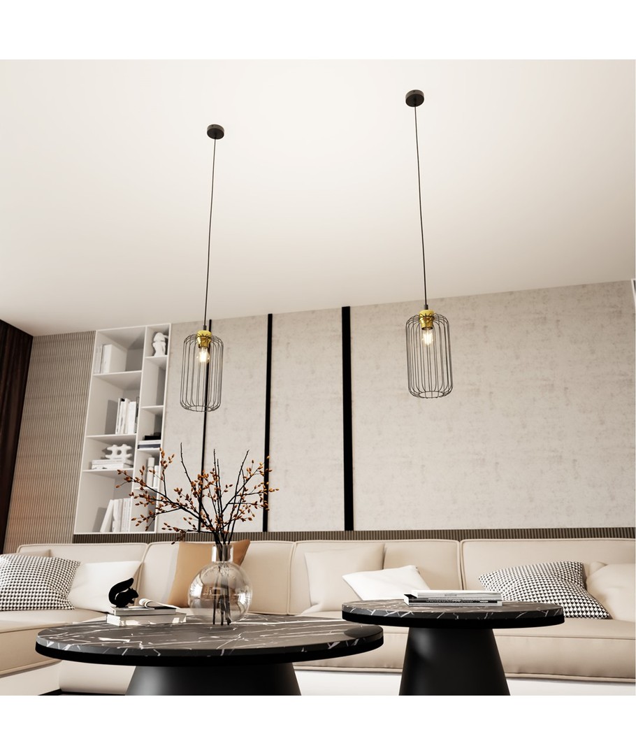 Vander 1 pendellampe er en utsøkt fusjon av tak- og industristil, som med sitt unike design bringer et moderne og røft uttrykk inn i ditt hjem. Denne pendellampen, fremstilt av holdbart pulverlakkert stål, byr på fine wireskjermer som skaper fascinerende belysningseffekter og fremhever lampens enkle, men karakterfulle estetikk. Vander-lampen er en perfekt match til både stue, spisestue, kjøkken og kommersielle lokaler, hvor den tilfører en ekstra dimensjon av originalitet og moderne stil. Med sin stilrene kombinasjon av svart og gull, er denne lampen en elegant tillegg til enhver moderne innredning.