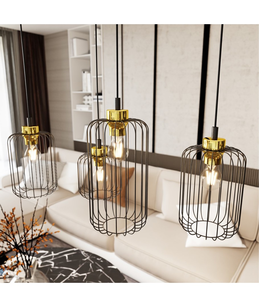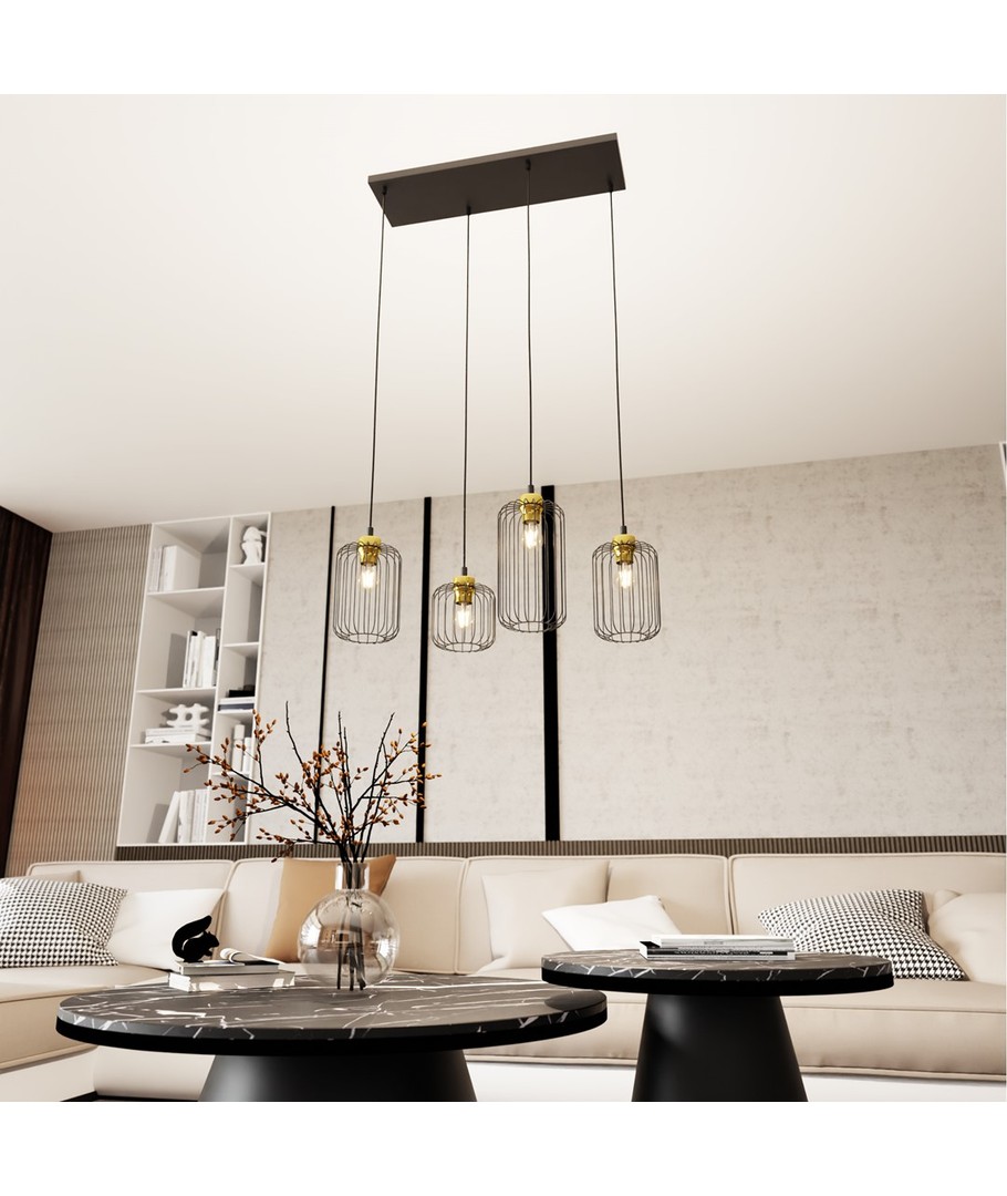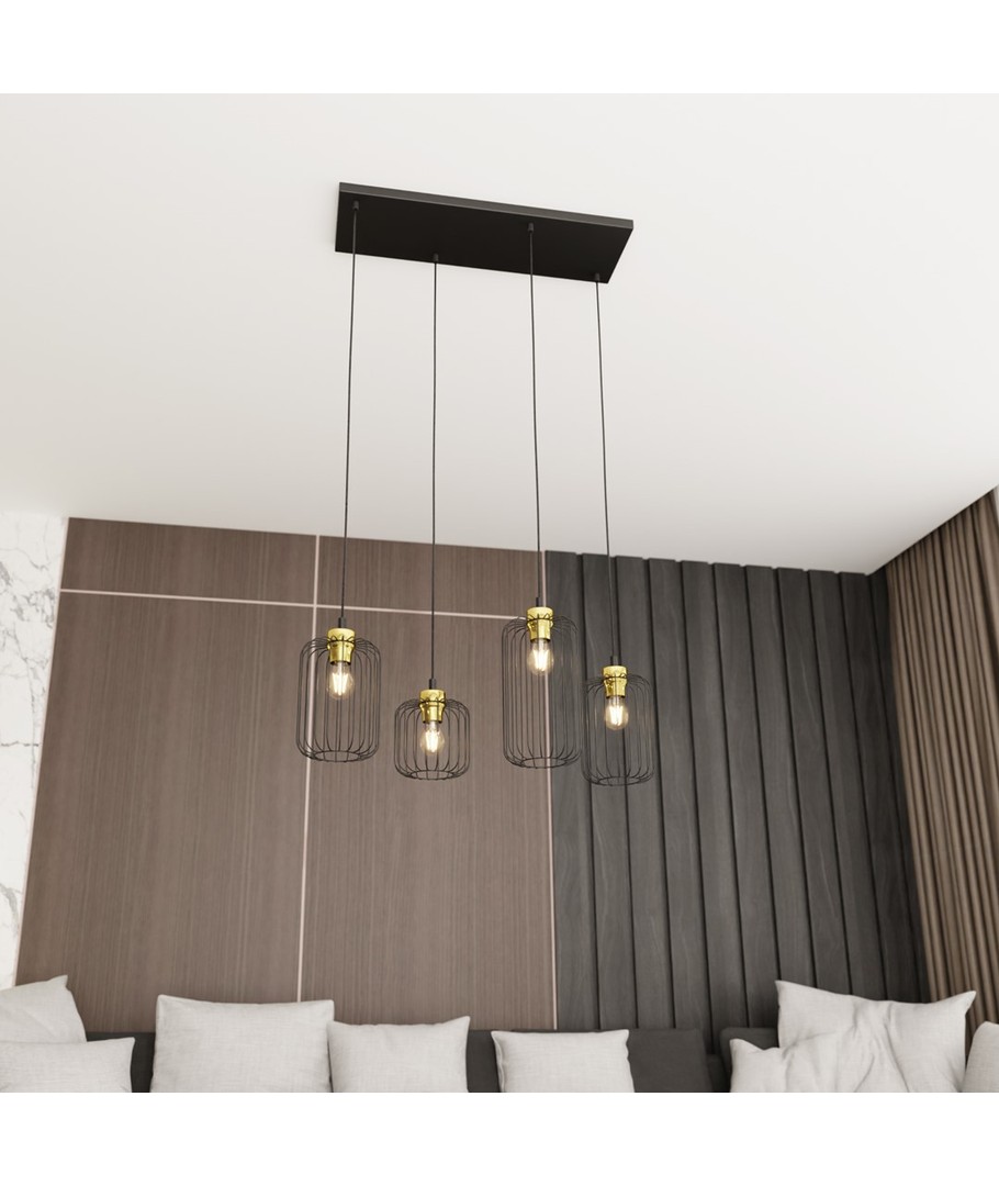 Opplev den perfekte kombinasjon av loft- og industriell stil med Vander 4 Sort/Gull pendellampe. Denne stilige lampen er fremstilt av holdbart, pulverlakkert stål og har unike wireskjermer som skaper fascinerende lyseffekter. Den rå karakteren og moderne design gjør den ideell for både stue, spisestue, kjøkken og kommersielle rom. Vander lampen gir dine interiører et unikt og moderne preg som tiltrekker oppmerksomhet og tilfører originalitet.