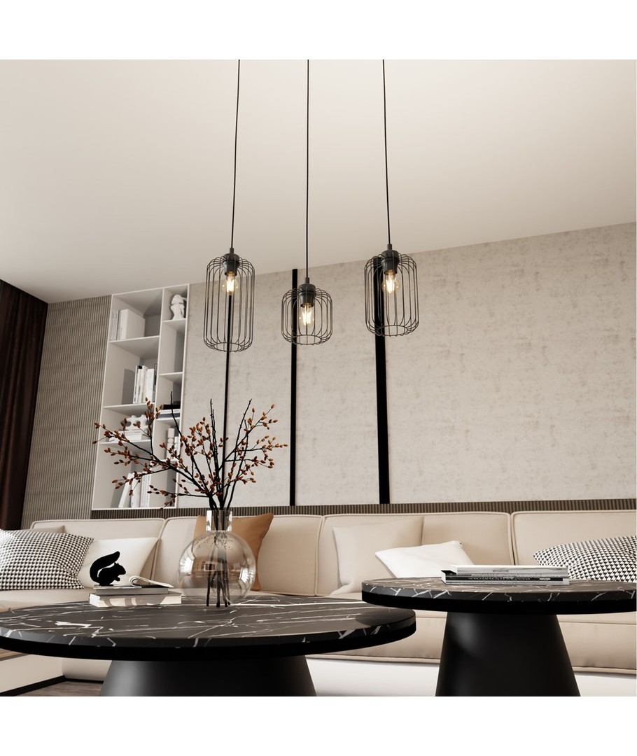 Vander 3 Sort pendellampe kombinerer det beste fra tak- og industriell stil, noe som gjør den til en ideell belysningsløsning for moderne hjem og kommersielle rom. Laget av holdbart pulverlakkert stål, tilbyr denne pendellampen en rå og unik karakter som komplementerer ethvert rom. Med sine karakteristiske trådinnsatser skaper Vander interessante lyseffekter, som tilfører originalitet og moderne design til stuen, spisestuen, kjøkkenet eller kontoret. Denne lampen er perfekt for dem som ønsker å legge til et snev av stil og individualitet til innredningen.