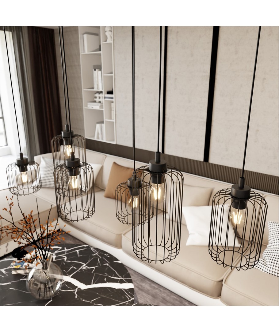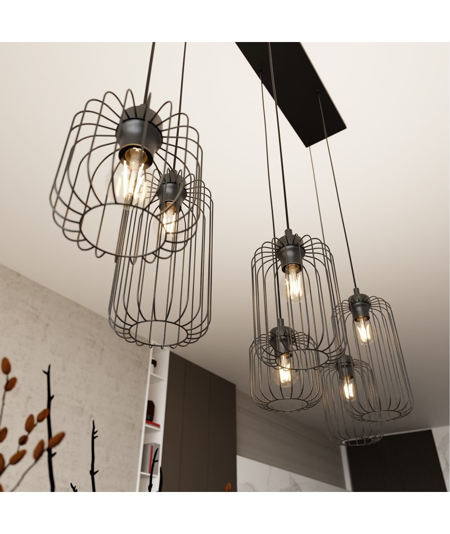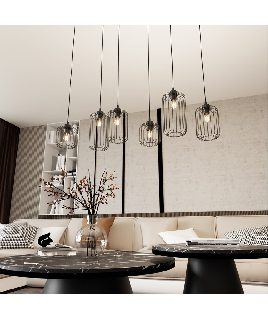 Opplev den perfekte kombinasjonen av tak- og industriell design med Vander 6 Sort pendellampe. Laget i holdbart, pulverlakkert stål, tilbyr denne lampen unike wire-skjermer som skaper interessante lyseffekter og fremhever dens rå karakter. Enten den plasseres i stuen, spisestuen, kjøkkenet eller i kommersielle rom, tilfører Vrander lampen en originalitet og moderne stil som beriker ethvert interiør. Med sin justerbare høyde kan den skreddersys til dine behov, mens det svarte designet sikrer en tidløs estetikk.