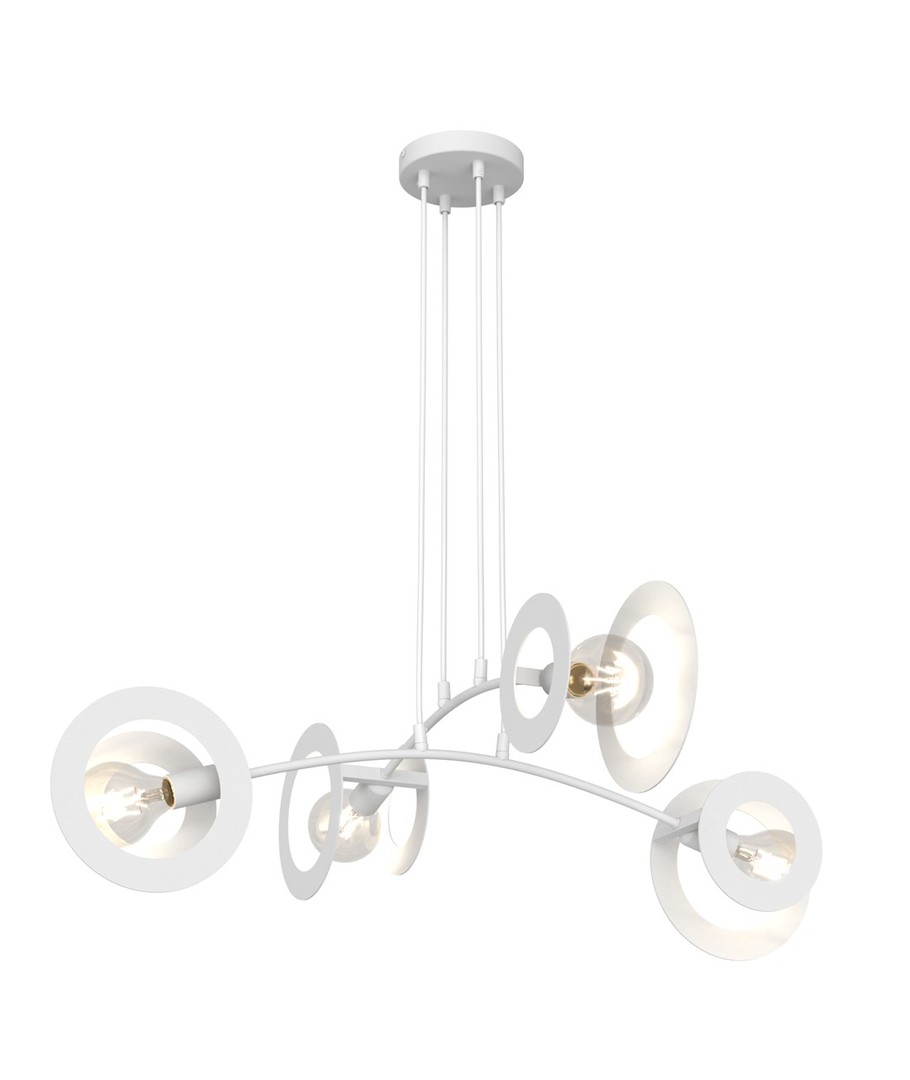 Euforia 4 Hvit pendellampe er innbegrepet av moderne design med sin kombinasjon av minimalistisk estetikk og geometriske former. Denne lampen er fremstilt av metall, noe som gir den et elegant og holdbart uttrykk. Dens unike form fanger øyet og tilfører personlighet til ethvert rom. Med sin imponerende lysfordeling er den ideell for stuer, spisestuer eller kontorområder, hvor den skaper en behagelig atmosfære. Euforia er det perfekte valget for de som verdsetter originale og stilfulle løsninger.