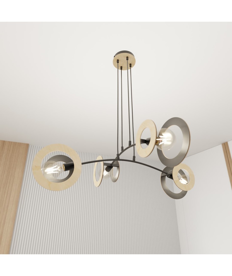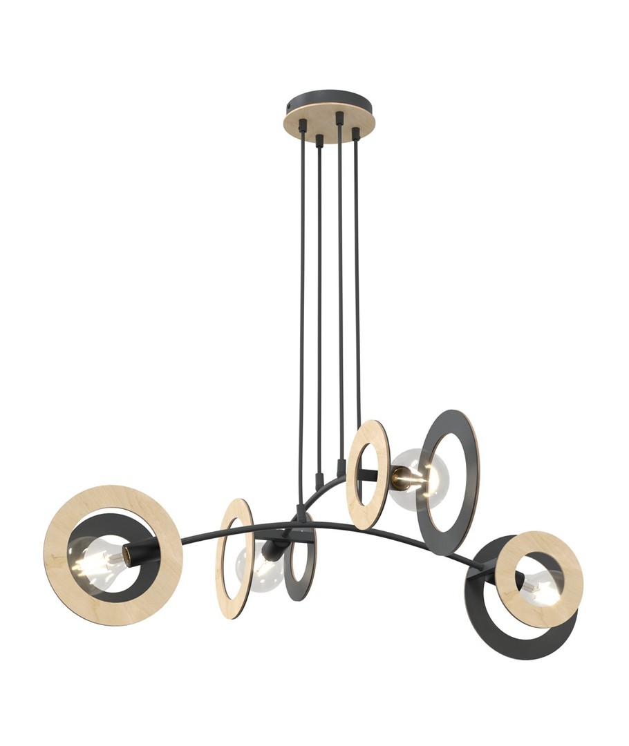 Opplev den moderne elegansen med Skiva 4 Svart pendellampe, som perfekt balanserer metall og naturens varme gjennom kryssfinér. Dette belysningselementet bringer en raffinert letthet til ethvert rom, takket være sin geometriske form. Skiva-lampen er ideell for skandinaviske interiører, hvor den gir fra seg et mykt lys som skaper en koselig atmosfære i stue, spisestue eller kjøkken. Hvis du verdsetter minimalistisk design og naturlige materialer, er denne lampen det perfekte valget.