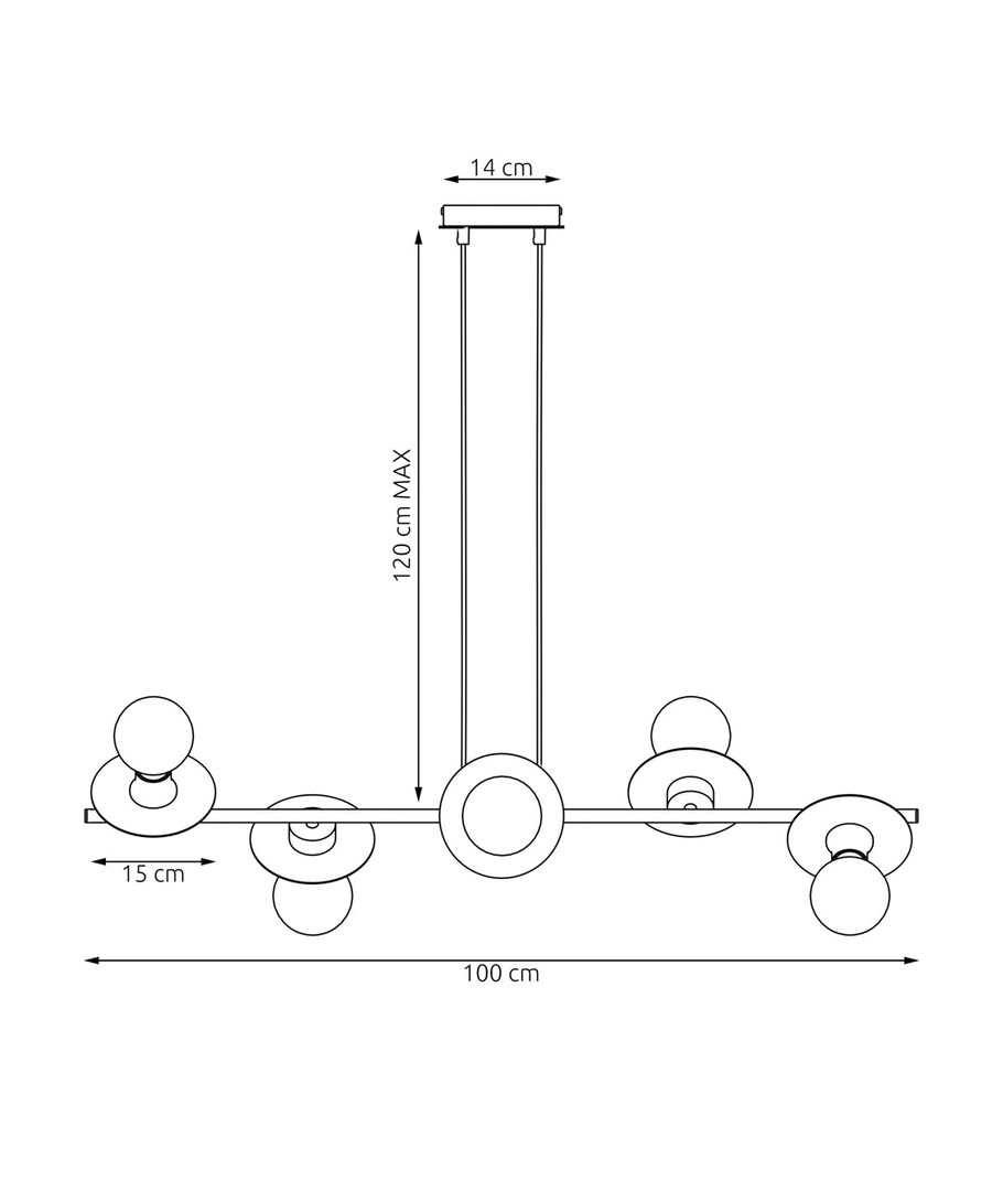 Lampen er optimal for de fleste rom med takhøyde og skaper en innbydende atmosfære med sitt stilrene uttrykk. Dimensjonene på pendellampen er 1000 x 1200 x 140 mm, noe som gir en imponerende tilstedeværelse uten å virke overveldende i rommet.