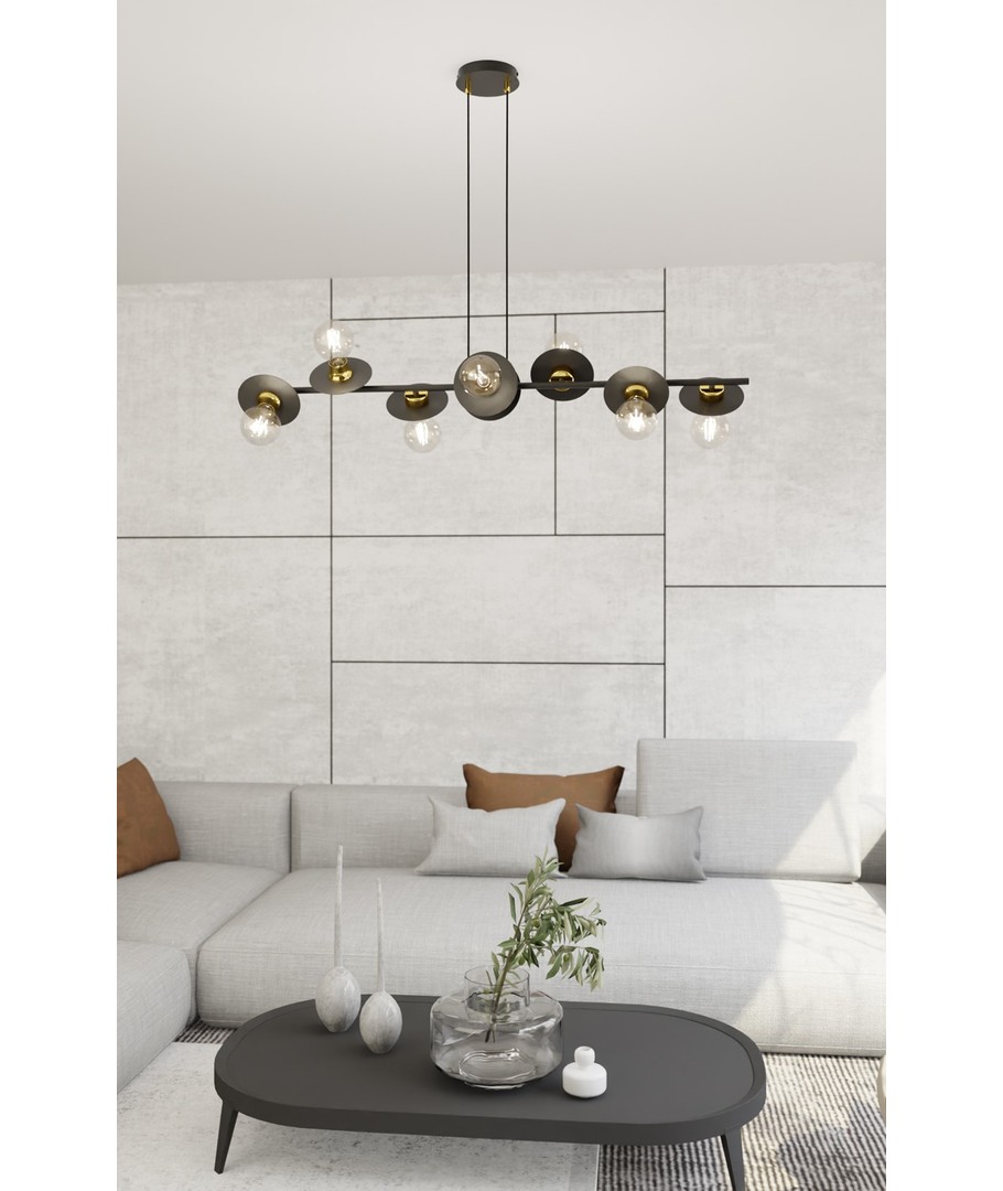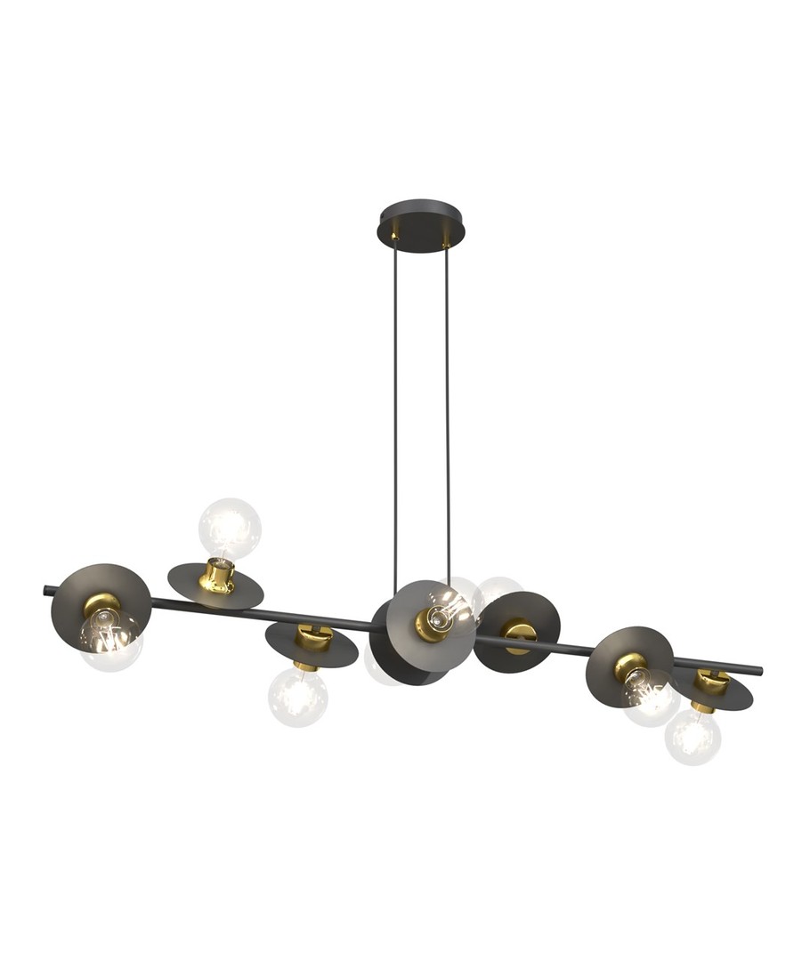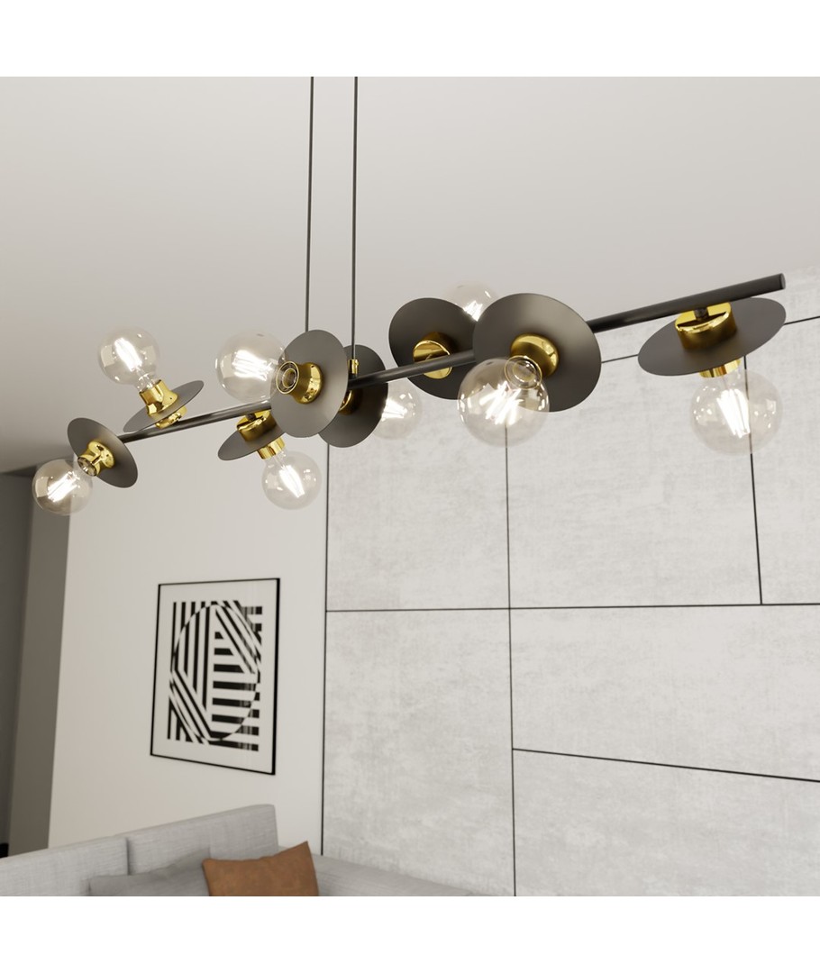 Token 8 Sort/Gull pendellampe er en imponerende lysinstallasjon som fascinerer med sitt moderne og geometriske design. Denne lampen fungerer som et storslått dekorativt element som tilfører ethvert rom et moderne preg. Med sin klare belysning er den ideell for stuer, spisestuer eller kontorer og sikrer at stilen i rommet forsterkes. Token-lampen er det perfekte valg for dem som verdsetter originalt design og moderne detaljer i sin innredning.