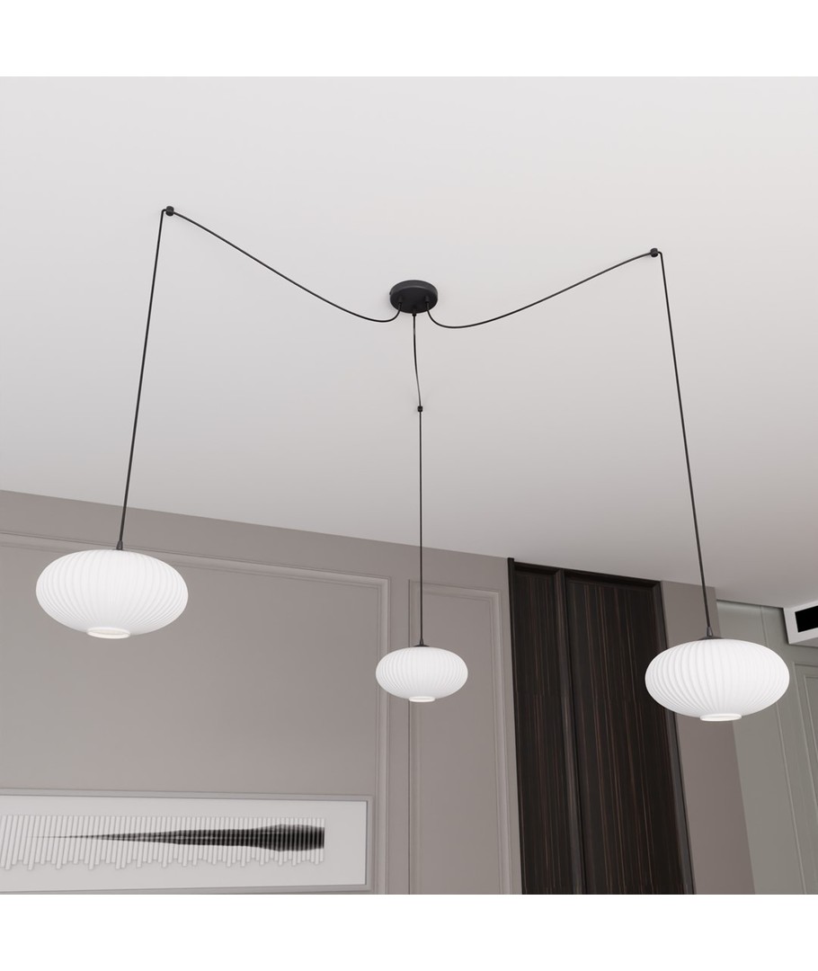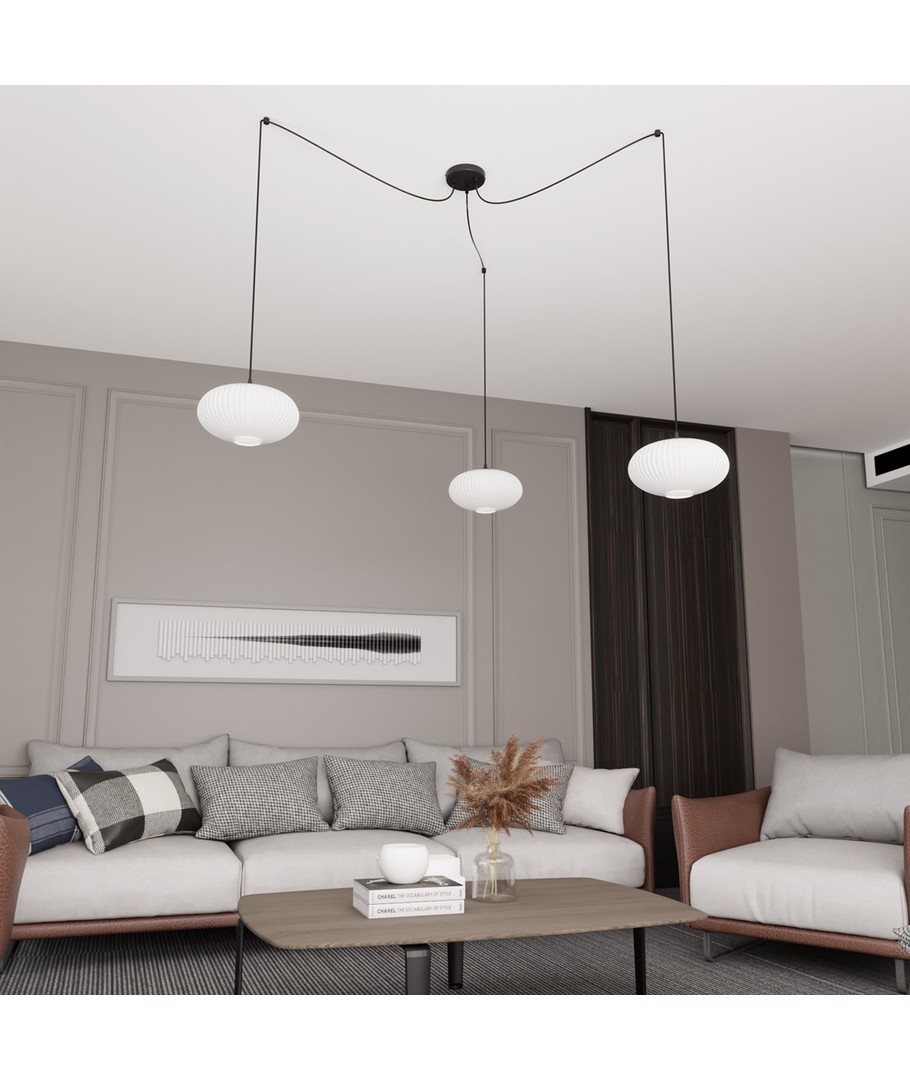 Origo 3 Sort/Opal pendellampe er en ideell løsning for deg som ønsker å legge til et moderne preg til ditt hjem eller kommersielle rom. Med sitt elegante design og funksjonalitet skaper denne lampen en varm atmosfære som er perfekt for både stuer og restauranter. De utstrakte armene og den hvite glasskjermen danner en harmonisk helhet som sikrer en stilfull belysning. Origo lampens kombinasjon av estetikk og kvalitet gjør den til et fremragende valg for dem som søker noe spesielt.
