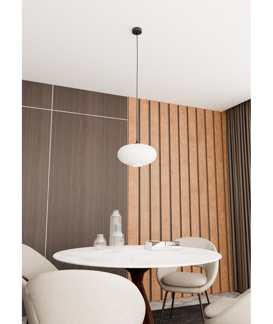 Med en diameter på 30 cm er den både kompakt og iøynefallende, velegnet som et midtpunkt i både små og store rom. Det rene sort/opale designet gir et harmonisk uttrykk som komplimenterer en rekke interiørtrender, fra minimalistisk til klassisk.