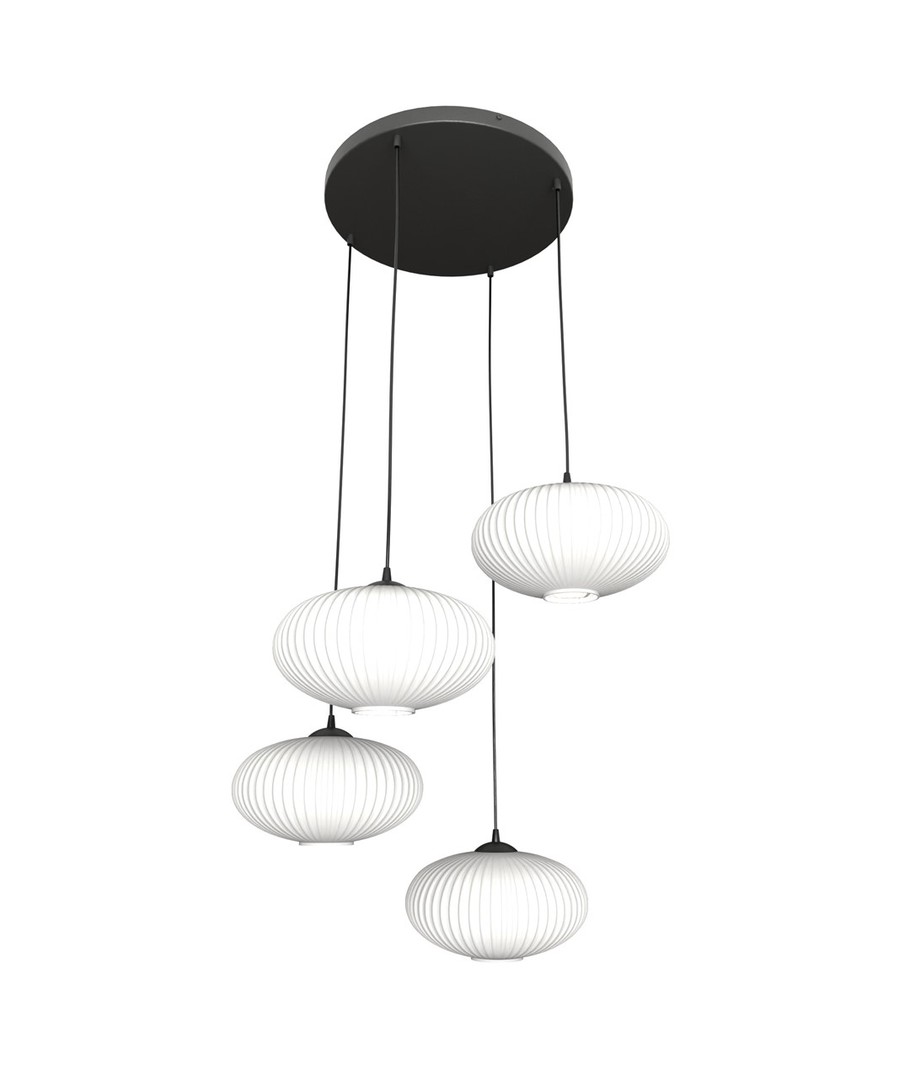 Coco 4 Sort Prem Opal pendellampe er et moderne belysningselement, der forener eleganse med funksjonalitet. Med sine glasskupler utsender lampen et varmt og innbydende lys, som skaper en følelse av letthet og subtilitet i ethvert rom. Perfekt til både stue og spisestue fungerer Coco-lampen som et stilfullt innredningsakcent. Dens design gjør den ideell til å supplere ulike stiler, fra moderne til mer klassiske innredninger.