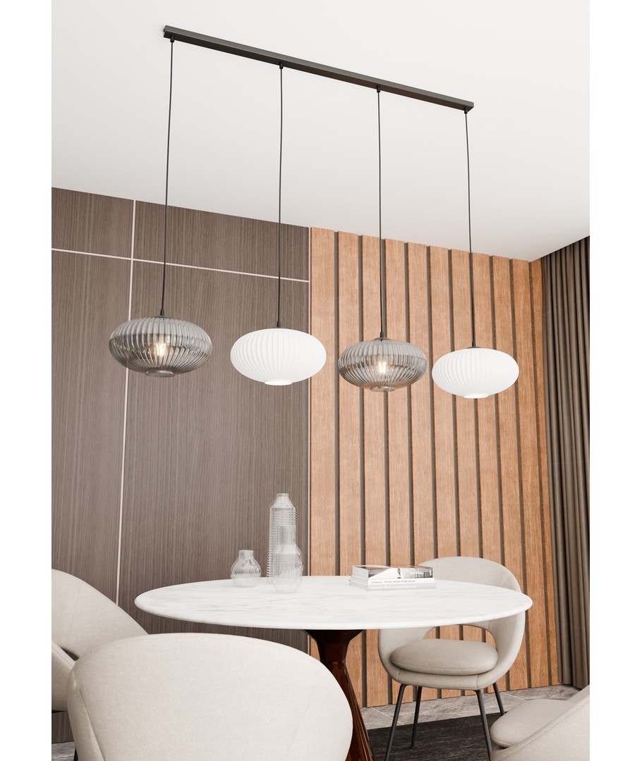 Coco 4 Sort Mix pendellampe er en moderne belysningsløsning, som vakkert kombinerer eleganse og funksjonalitet. Med sine stilrene glasskjermene skaper pendellampen en varm og innbydende atmosfære, som tilfører rommet en lett og subtil sjarm. Denne pendellampe er perfekt for både stue og spisestue, hvor den fungerer som en elegant og stilfull aksent i enhver innredning. Den justerbare høyden gjør det mulig å tilpasse lampen etter dine behov, mens den svarte og grafittfargede skjermen tilfører en moderne touch til ditt hjem.