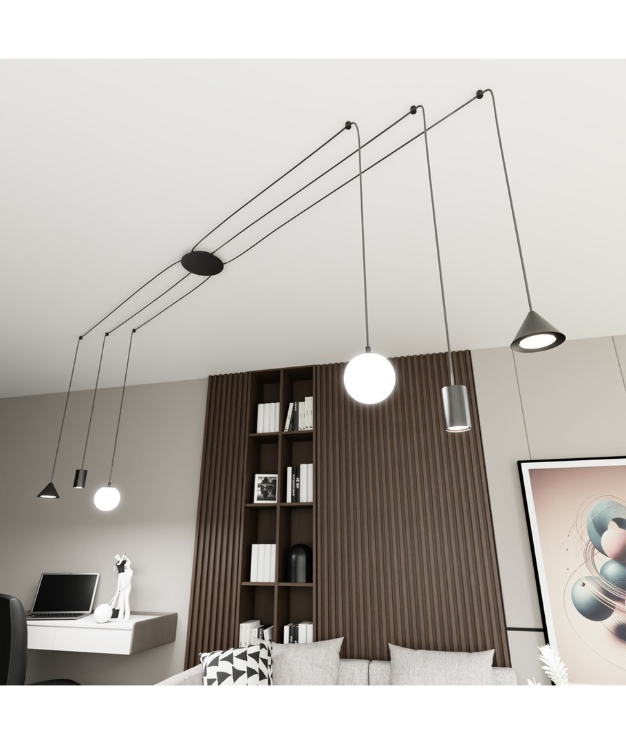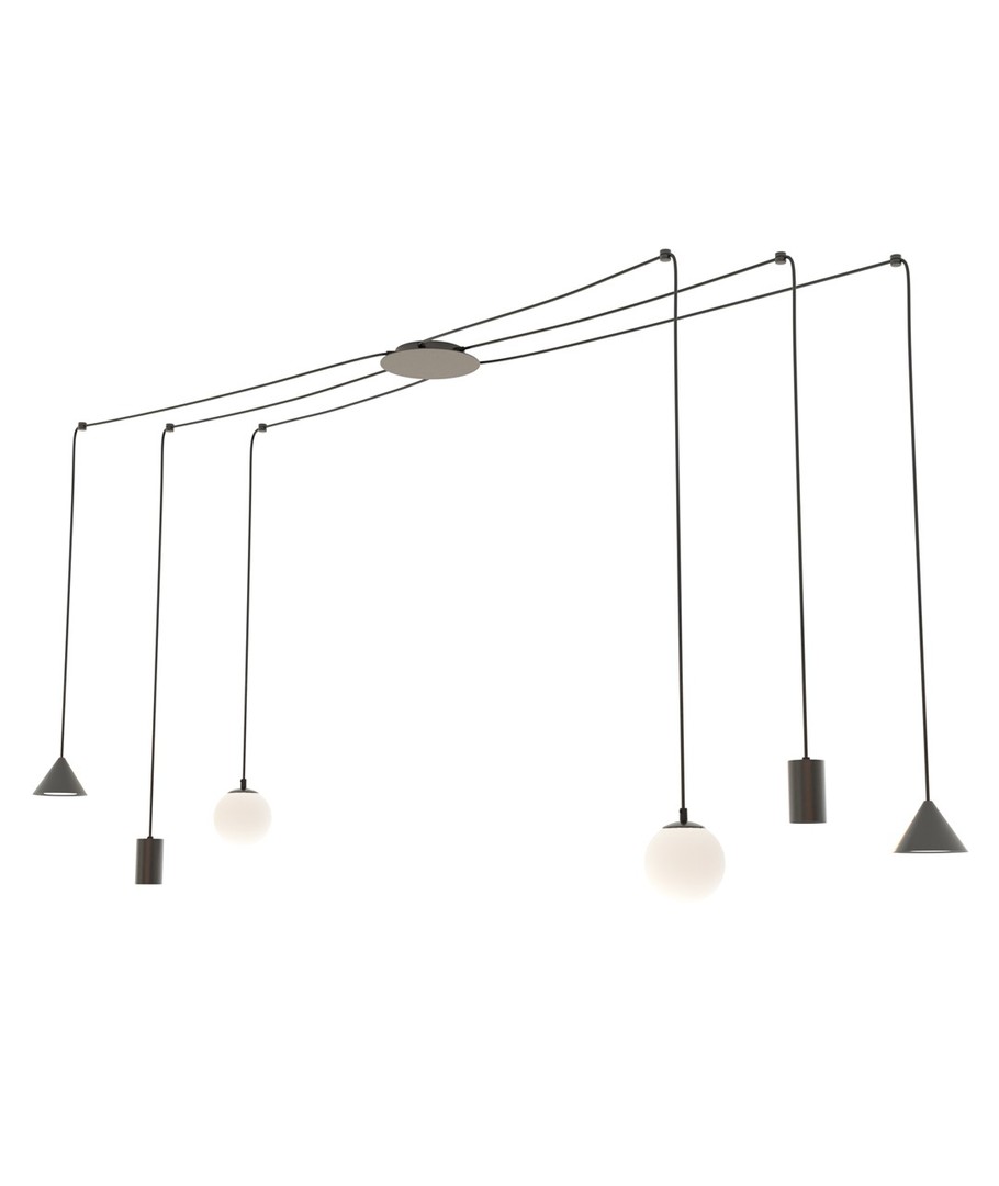 Fuji 6 Sort pendellampe er et imponerende eksempel på moderne belysningsdesign, som kombinerer stil og funksjonalitet. Denne unike "spider"-type lampe tilbyr utallige arrangementsmuligheter, som gjør den til det perfekte valg for enhver innredning. Med sine tre forskjellige lampeskjermer skaper den et betagende og unikt utseende, som helt sikkert vil tiltrekke oppmerksomhet. Fuji-lampens slanke og sofistikerte design passer spesielt godt til høye industrielle rom og tilfører et karakteristisk preg til ethvert miljø. Opplev hvordan Fuji-lampen kan forvandle ditt interiør.