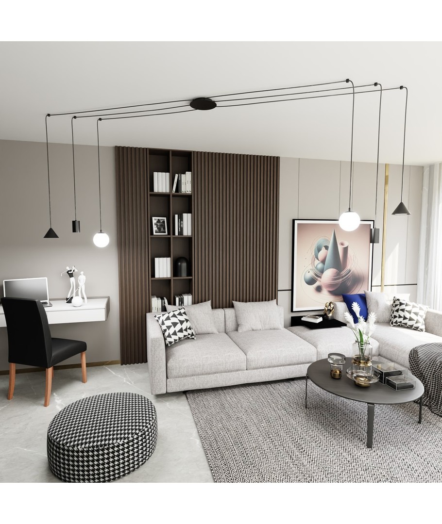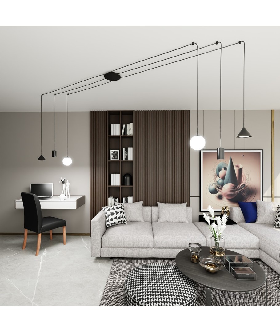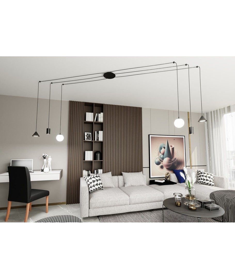 Skap en atmosfære av komfort og stil med Fuji 6 sort pendellampe, den perfekte kombinasjonen av funksjonalitet og design.