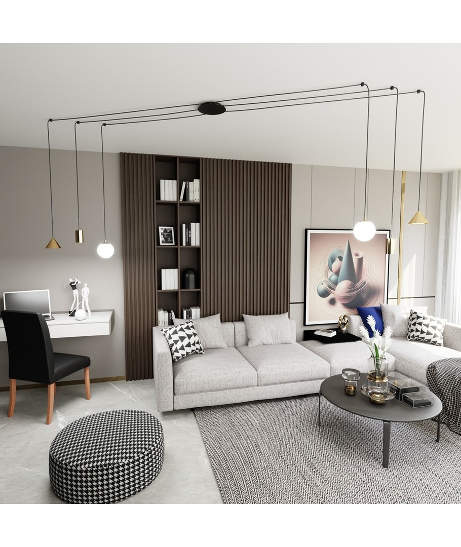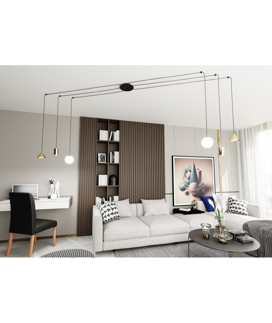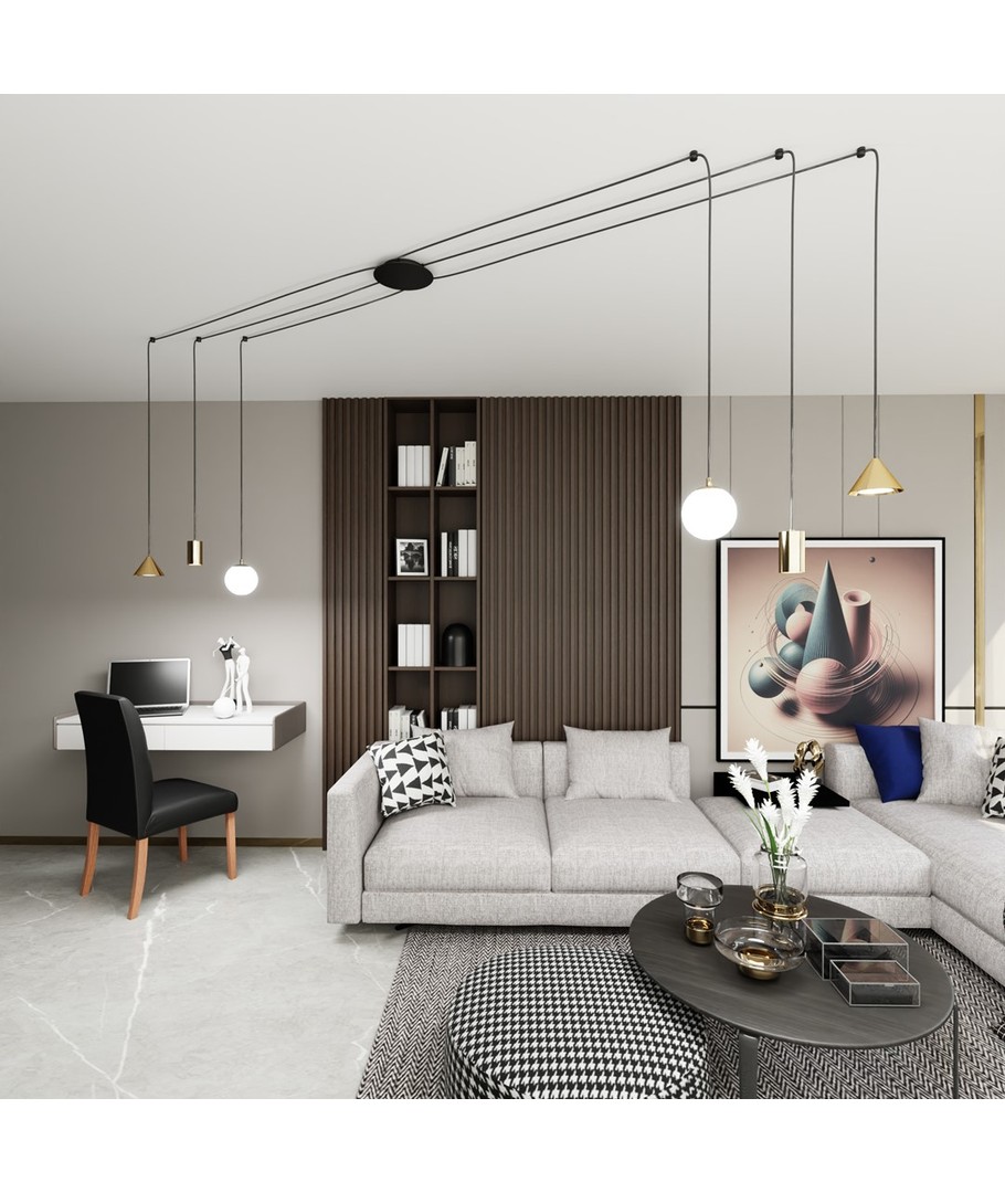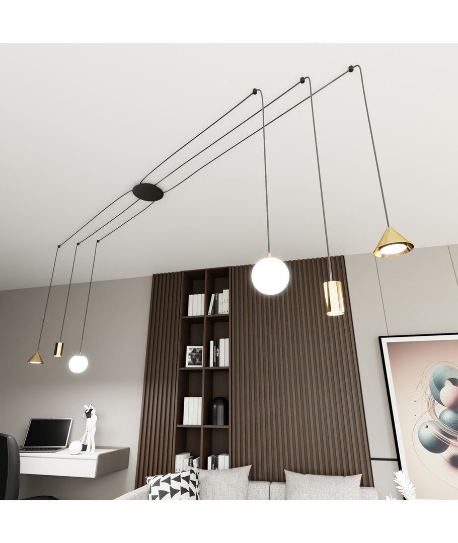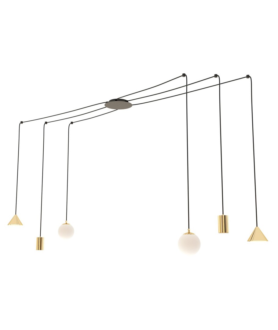 Oppgrader hjemmet ditt med Fuji 6 Gull pendellampe, hvor stil møter funksjonalitet for en unik belysningsopplevelse.