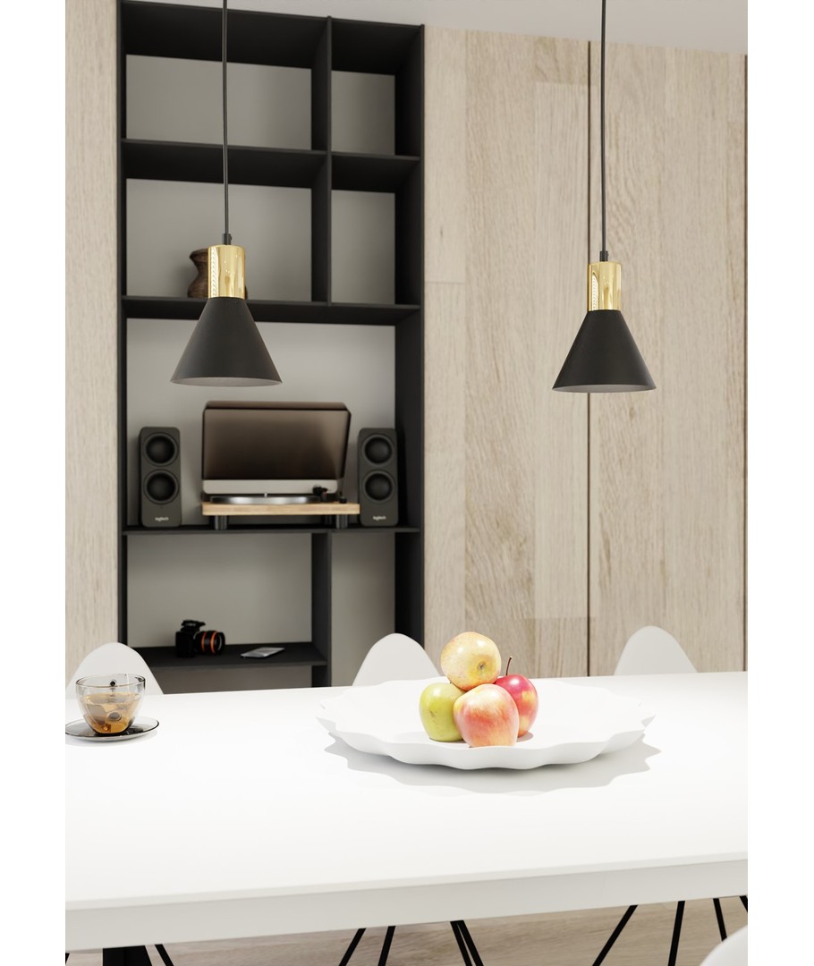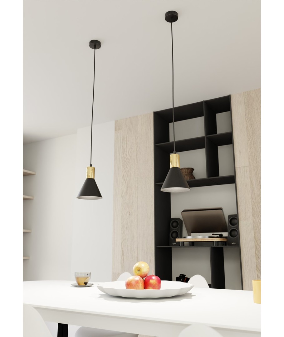 Rosa 1 Sort pendellampe er det perfekte valget for deg, som ønsker å legge til et snev av industrielt design til din innredning. Denne stilige lampen kombinerer en enkel, konisk metallform med elegante gulldetaljer som tilfører varme og raffinement. Med sin justerbare høyde er lampen ideell for både stue, spiseområde eller kjøkken og skaper en unik atmosfære i ethvert rom. Den råheten som finnes i metalldesignet, er godt balansert av den diskrete elegansen som kommer med den gylne aksenten.