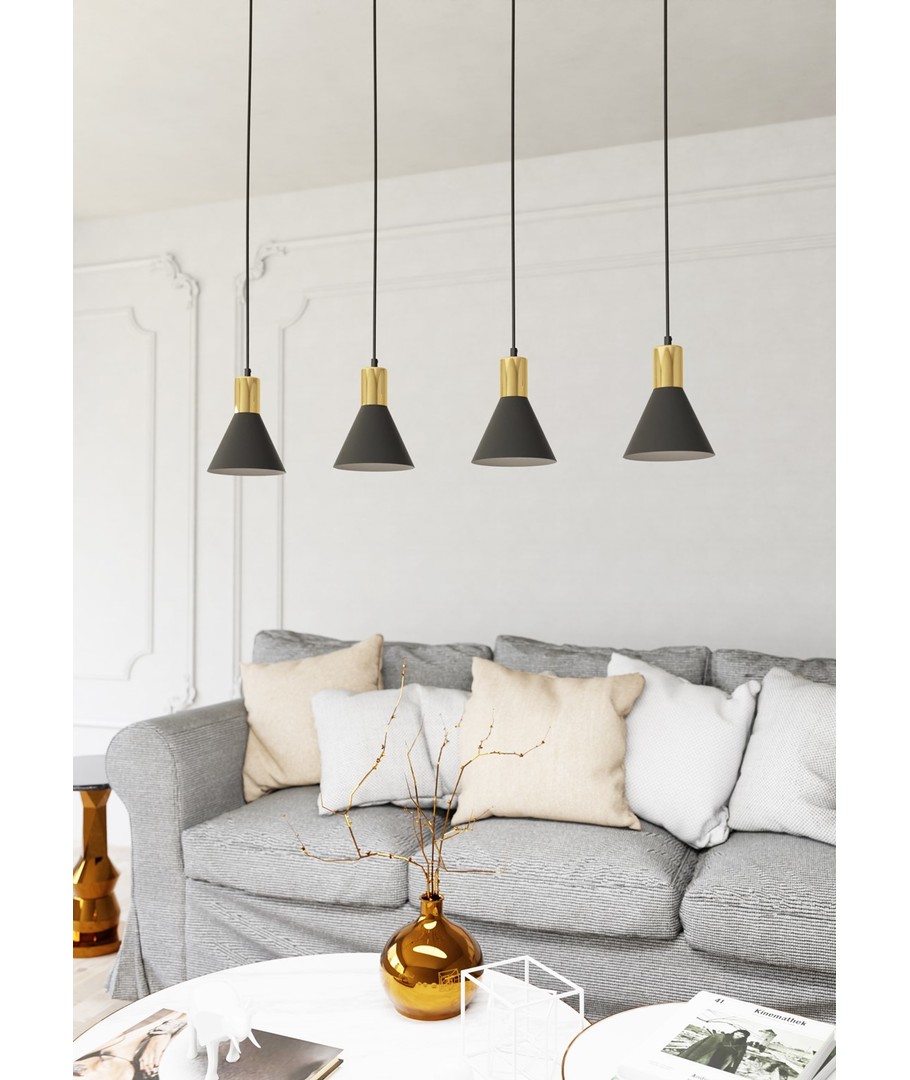 Forvandle ethvert rom med den stilige og moderne Rosa 4 Svart pendellampen. Denne lampen er designet for å gi et elegant preg til ditt hjem, enten det er over spisebordet, i stuen eller på soverommet.