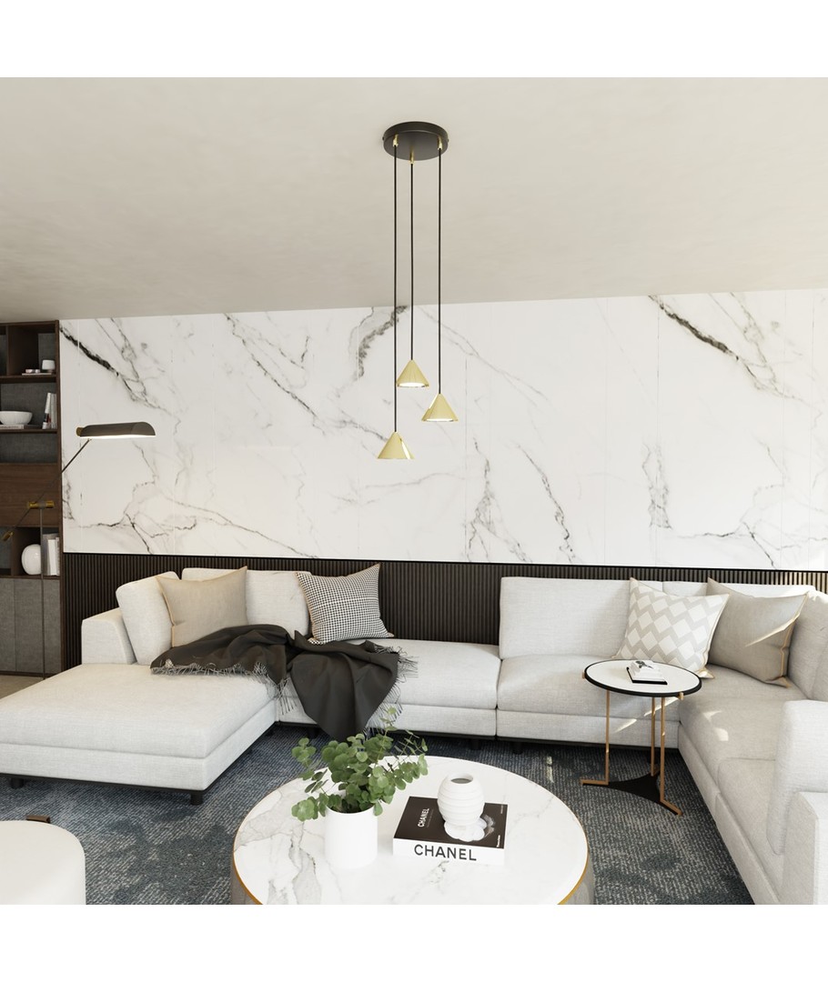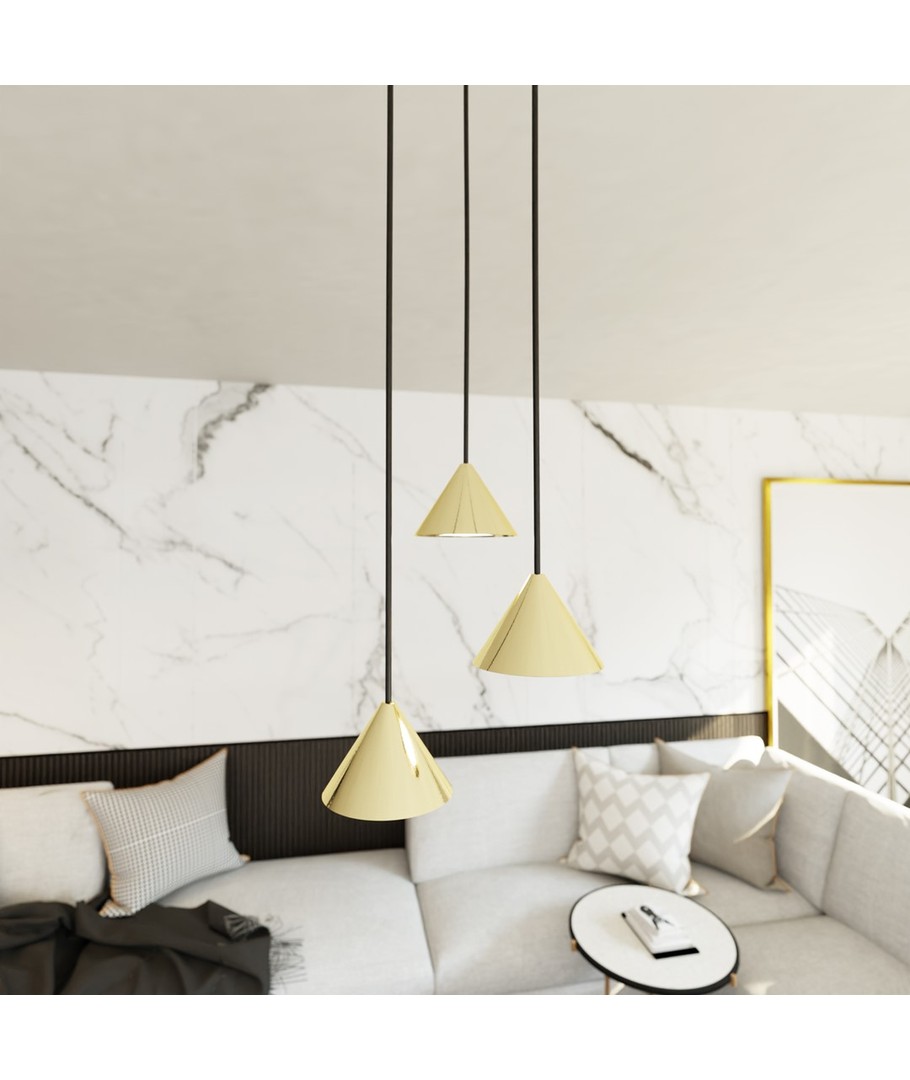 La Elit 3 Premium Gull pendellampe sette sitt preg på ditt interiør og lys opp rommet med stil og eleganse.