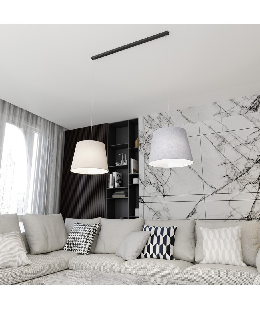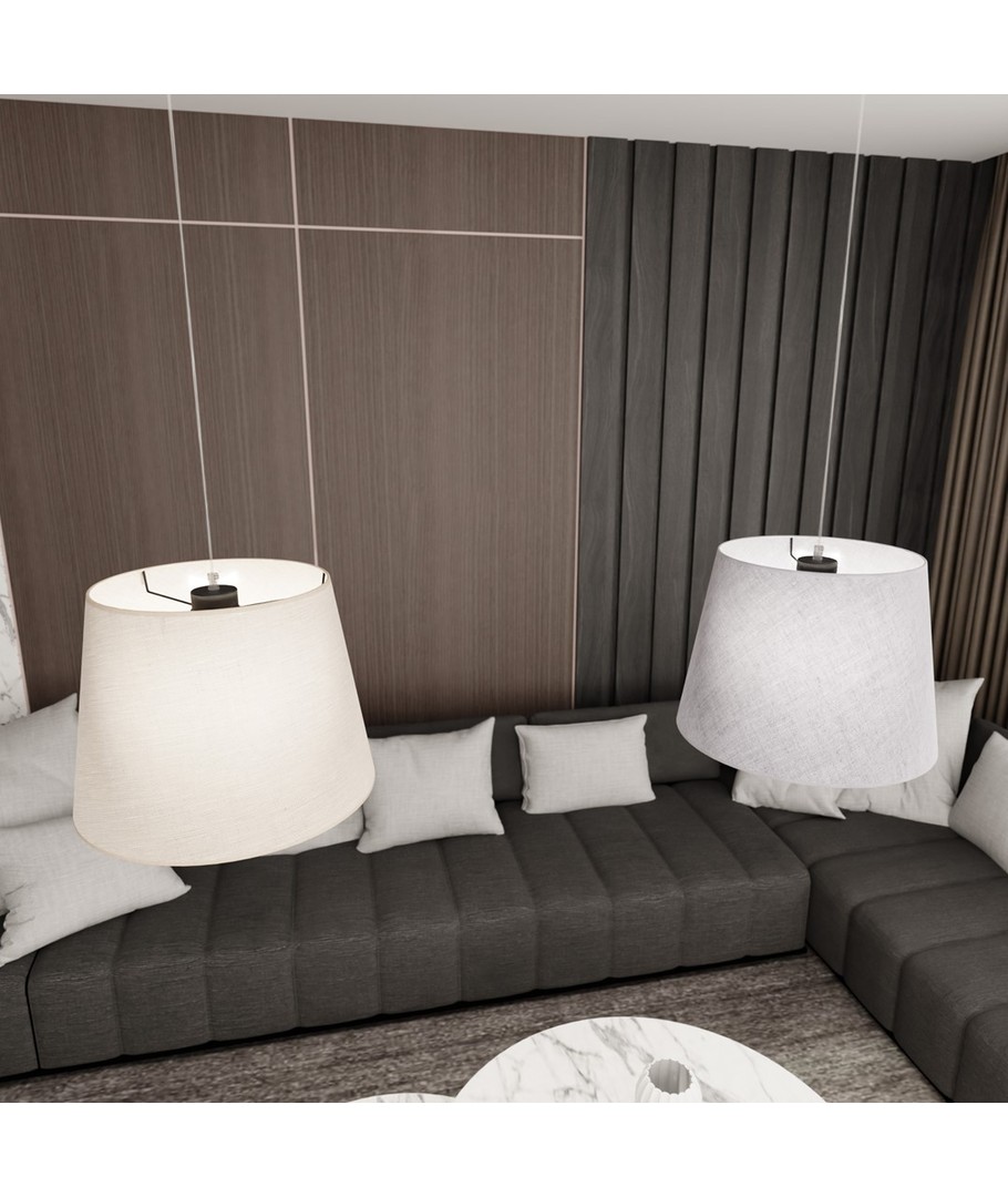 Opplev den elegante Epoca 2 Mix pendellampe som bringer et snev av sofistikasjon til ditt hjem. Denne lampen kombinerer klassisk design med moderne elementer og passer perfekt inn i både tradisjonelle og moderne interiører. Med sine stoffskjermer i grå og beige skaper den en varm og innbydende atmosfære, ideell for stuen, spisestuen eller soverommet. Epoca-lampens justerbare høyde gir fleksibilitet til å passe i enhver rominnstilling, mens dens to fatninger sikrer effektiv belysning.