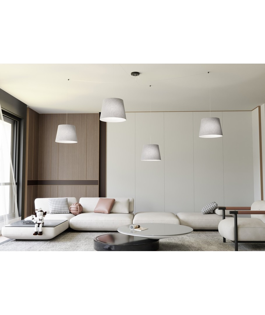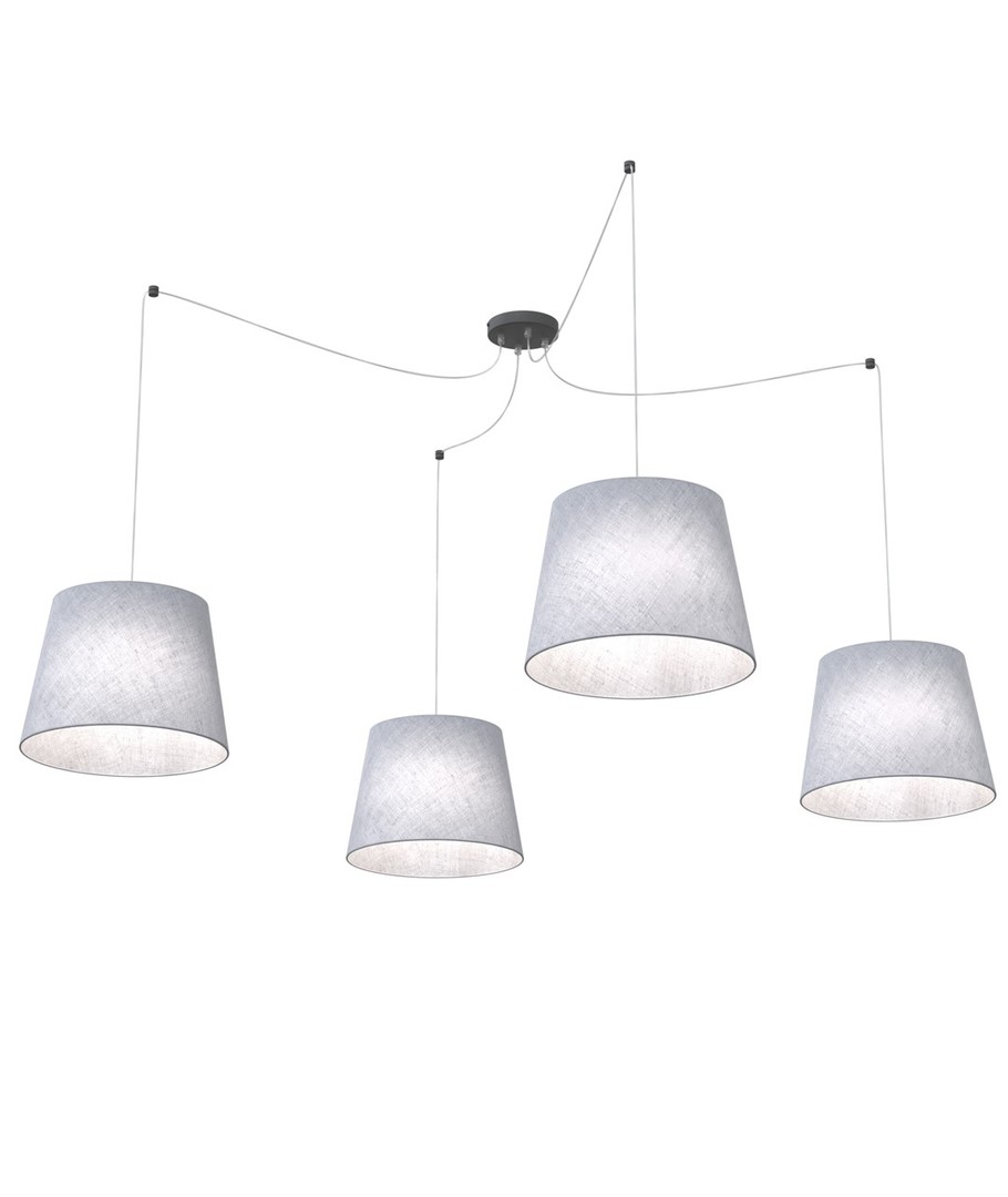 Opplev det elegante og minimalistiske designet med Ascot 4 Grå pendellampe. Denne lampen forener enkelhet og modernitet med sin stoffskjerm i subtile grå nyanser, som utsender et behagelig, diffust lys. Skap en varm atmosfære i stuen, spisestuen eller kjøkkenet. Ascot lampen passer perfekt inn i ulike interiører og tilfører stil til ethvert rom. Velg denne lampen hvis du verdsetter estetikk og funksjonalitet i én og samme løsning.