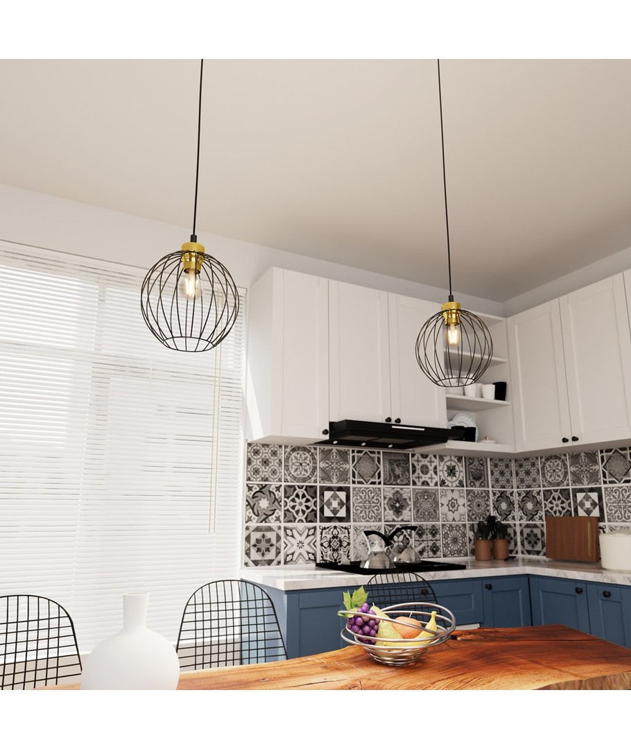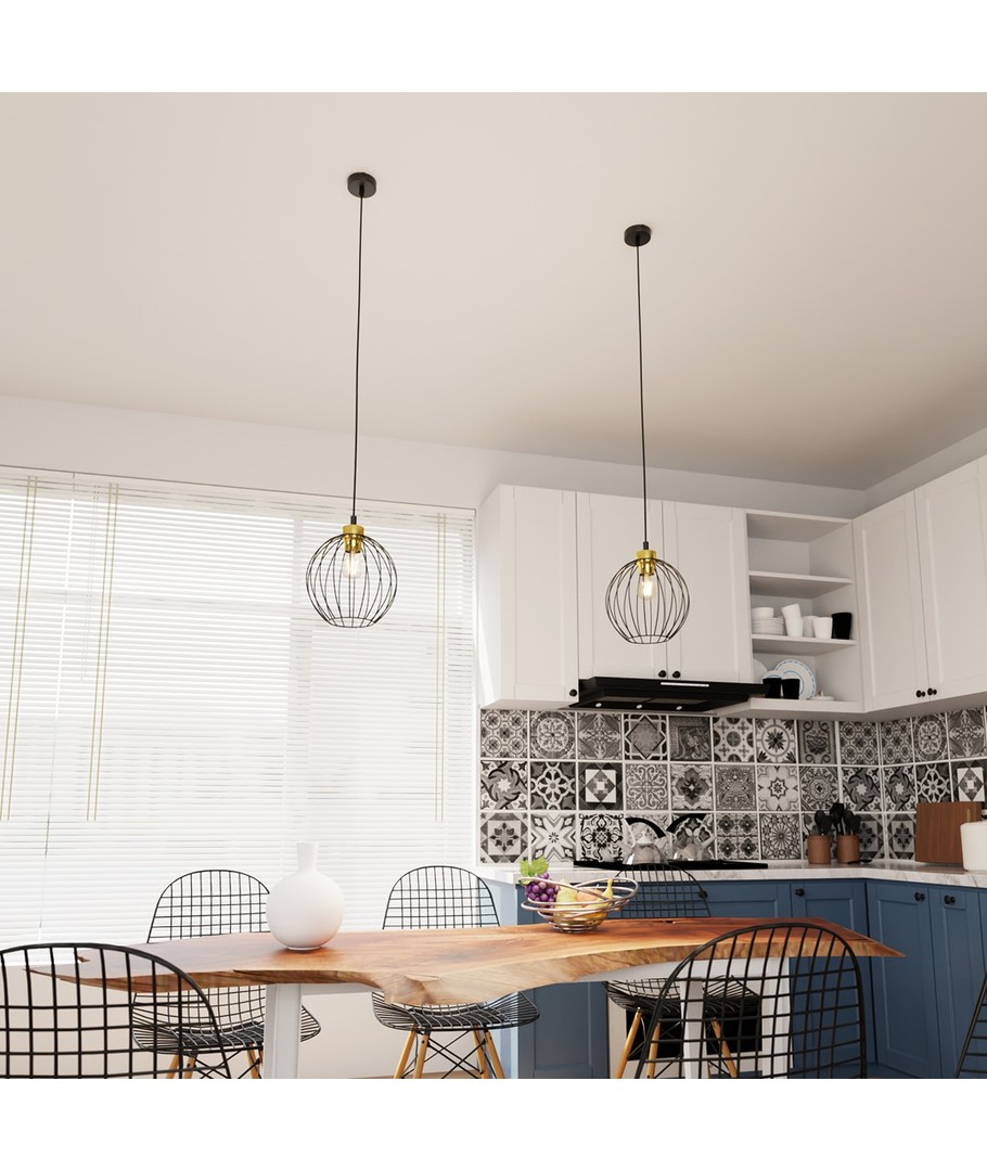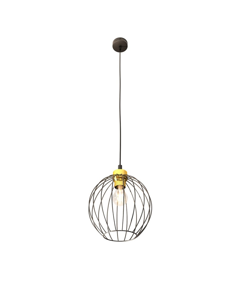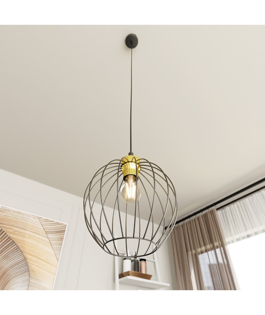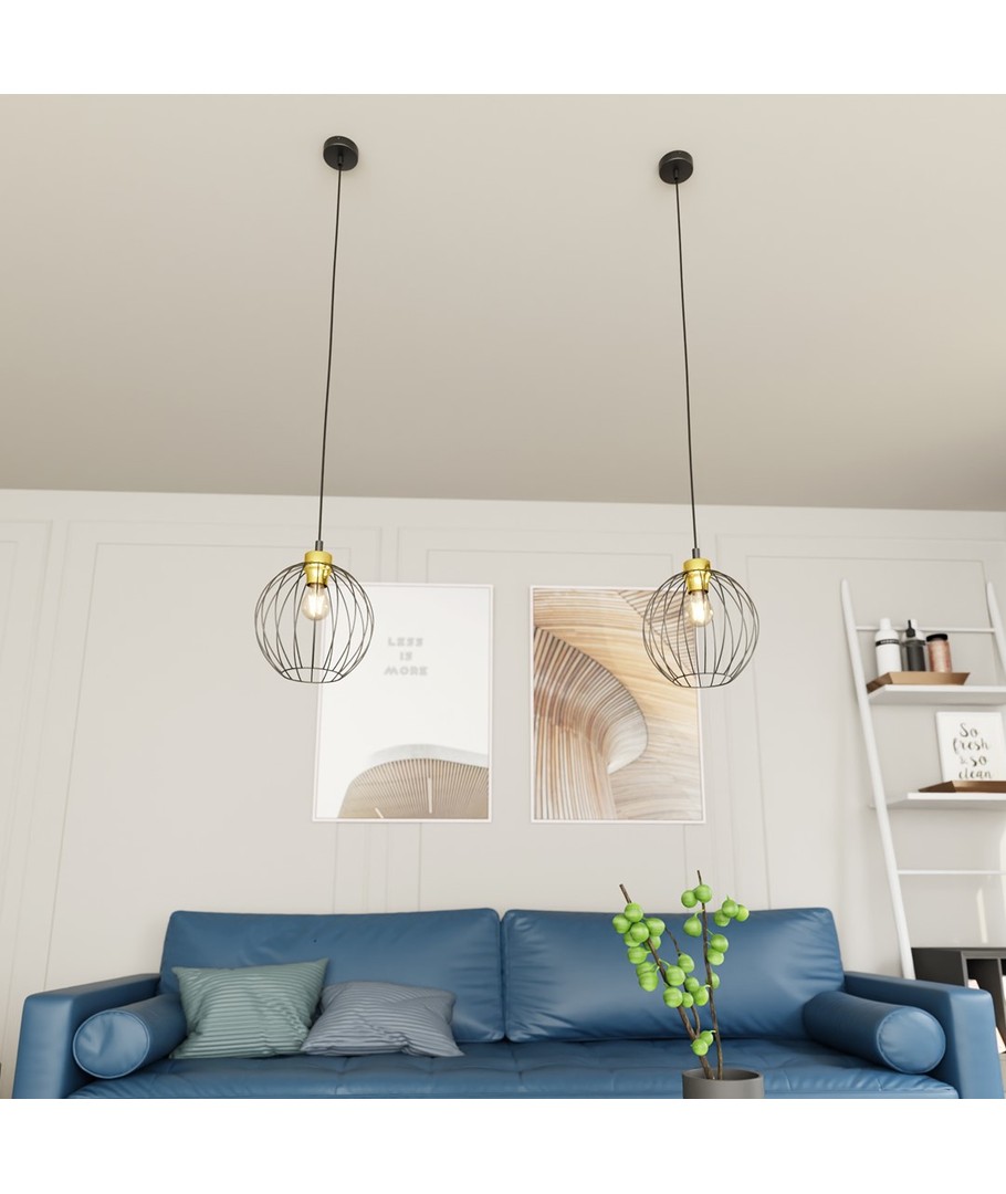 Nando 1 Sort/Gull pendellampe bringer en moderne loftsstil inn i ditt hjem med sitt unike design. Laget av solid, pulverlakkert stål, har denne lampen et rått og industrielt uttrykk som gir din innredning et snev av originalitet. Den åpne trådrammen skaper fascinerende lyseffekter, perfekt for å lyse opp både stue, spisestue og kjøkken. Med sin stilige kombinasjon av svart og gull, tilfører denne pendellampen en moderne vri til ethvert rom.