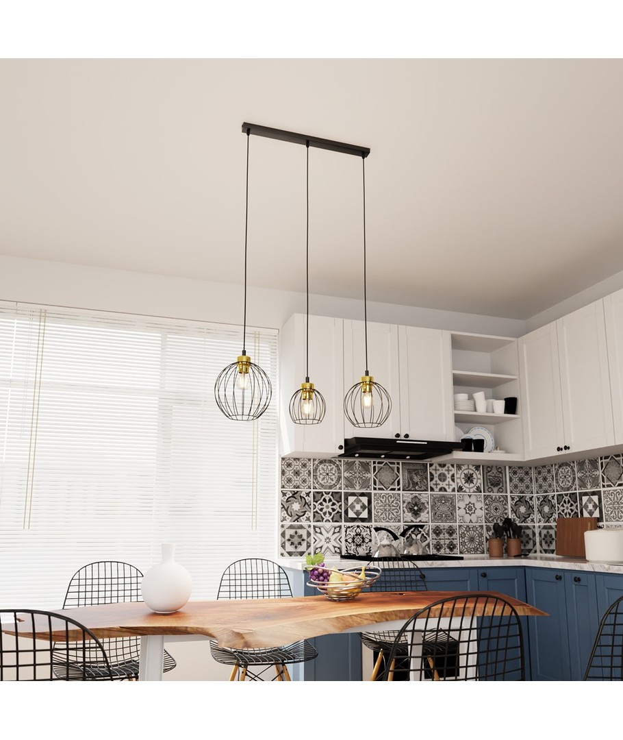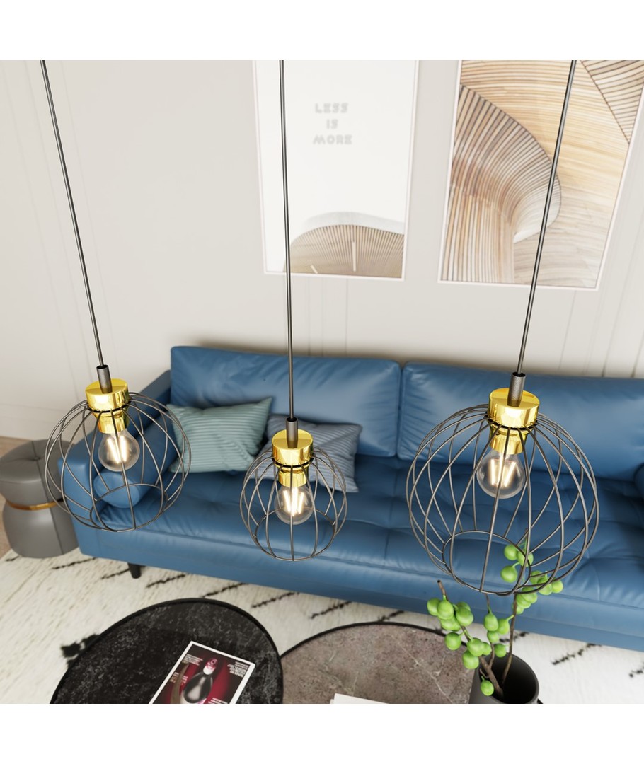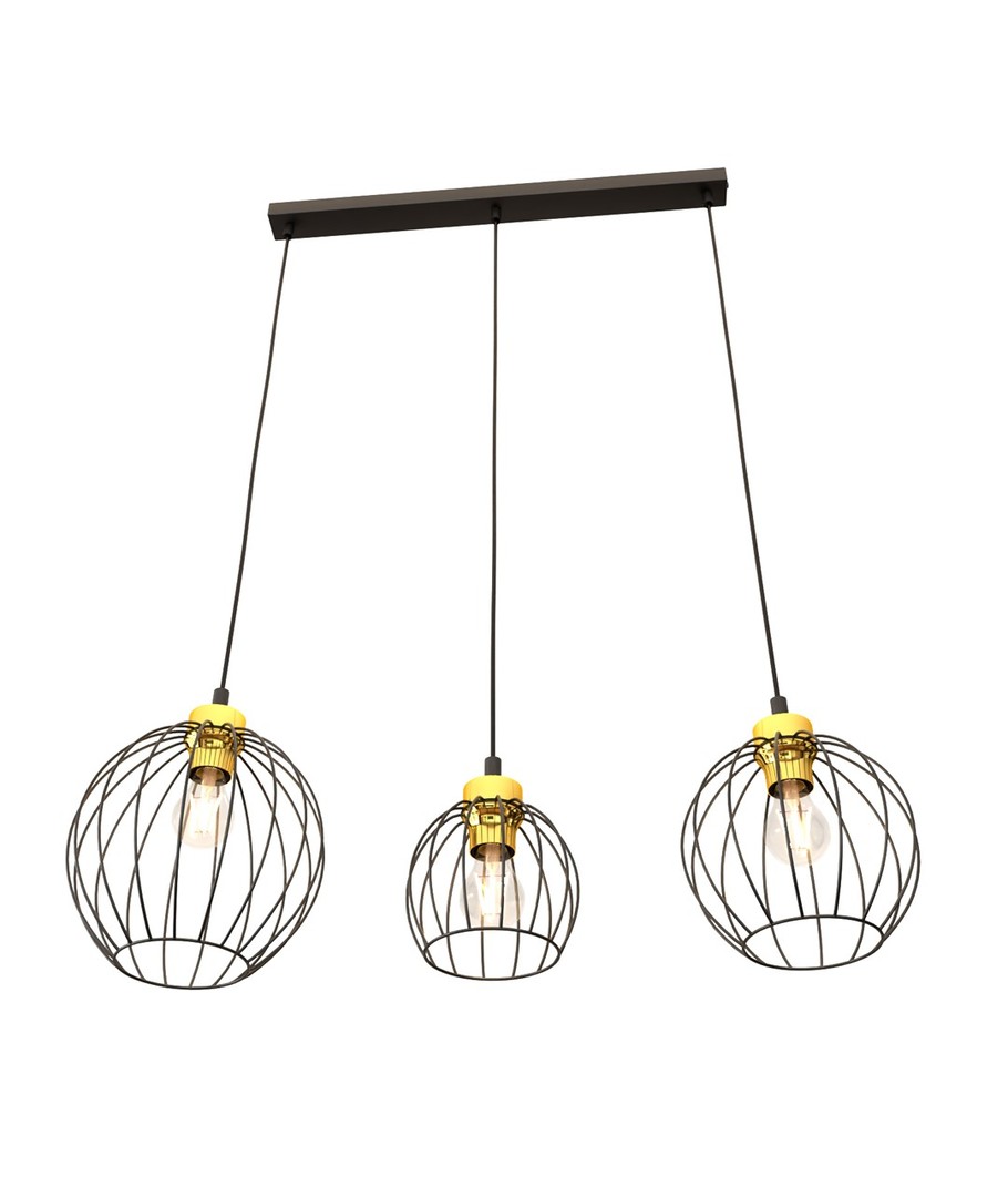 Nando 3 Sort/Gull pendellampe er det perfekte valg for dem som ønsker å legge til et snev av moderne loftstil til sitt hjem. Denne imponerende lampen, laget av solid stål, kombinerer rå industriell sjarm med en elegant design. Med sitt unike wire-aktige lampeskjermdesign skaper Nando interessante lysmønstre, som tilfører originalitet til enhver innredning. Det er den ideelle belysningsløsningen for stuen, spisestuen eller kjøkkenet og bringer en unik og varm atmosfære inn i rommet.